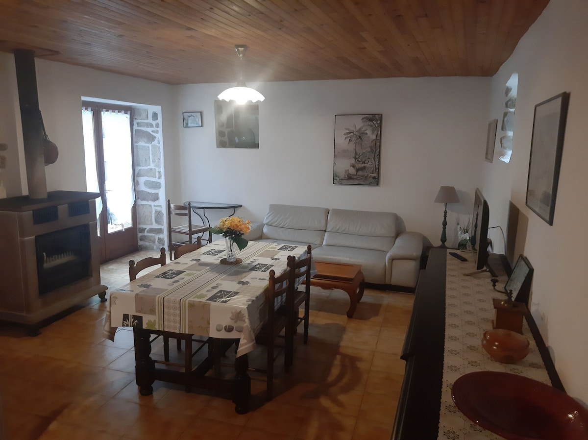 Une grande terrasse avec barbecue devant l'entrée, dominant la vallée, donnent dans le salon/salle à manger de ce très confortable gîte entièrement rénové de 45m². Cuisine intégrée totalement équipée (plaques vitrocéramique , réfrigérateur avec Freezer, four électrique, ...). Une chambre équipées d'un lits de 160x200 +lit parapluie(kit bebe). Coin salon avec canapé convertible 140x190 . WC indépendant et grande douche à l'italienne . Télé écran plat avec TNT et WIFI. Et une place de parking.