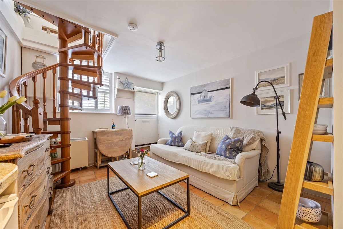 Գեղեցիկ ժամանակակից սելֆի, մեկ մահճակալով բնակարան կենտրոնական Սալկոմբում ՝ կայանատեղիով և գետաբերանի տեսարաններով, առանձին մուտք, 5 րոպե ոտքով դեպի նավահանգիստ, դրսի տարածք ՝ սեղանի աթոռներով Լաունջ/խոհանոցիկ ՝ 65 դյույմանոց շրջանակային հեռուստացույցով և Sonos կինոթատրոնով, Dualit կաթսա, միկրոալիքային վառարան, Nespresso սուրճի ապարատ, սառնարան: Ննջասենյակ ՝ սուպեր թագավորական մահճակալով, White ընկերության սպիտակեղենով և սրբիչներով, երկտեղանի ցնցուղով, հեռուստացույցով Բնակարանն ունի երկու ննջասենյակ, բայց մեկը առանձին է. օգտագործվում է որպես պահեստ, որպեսզի չօգտագործվի,