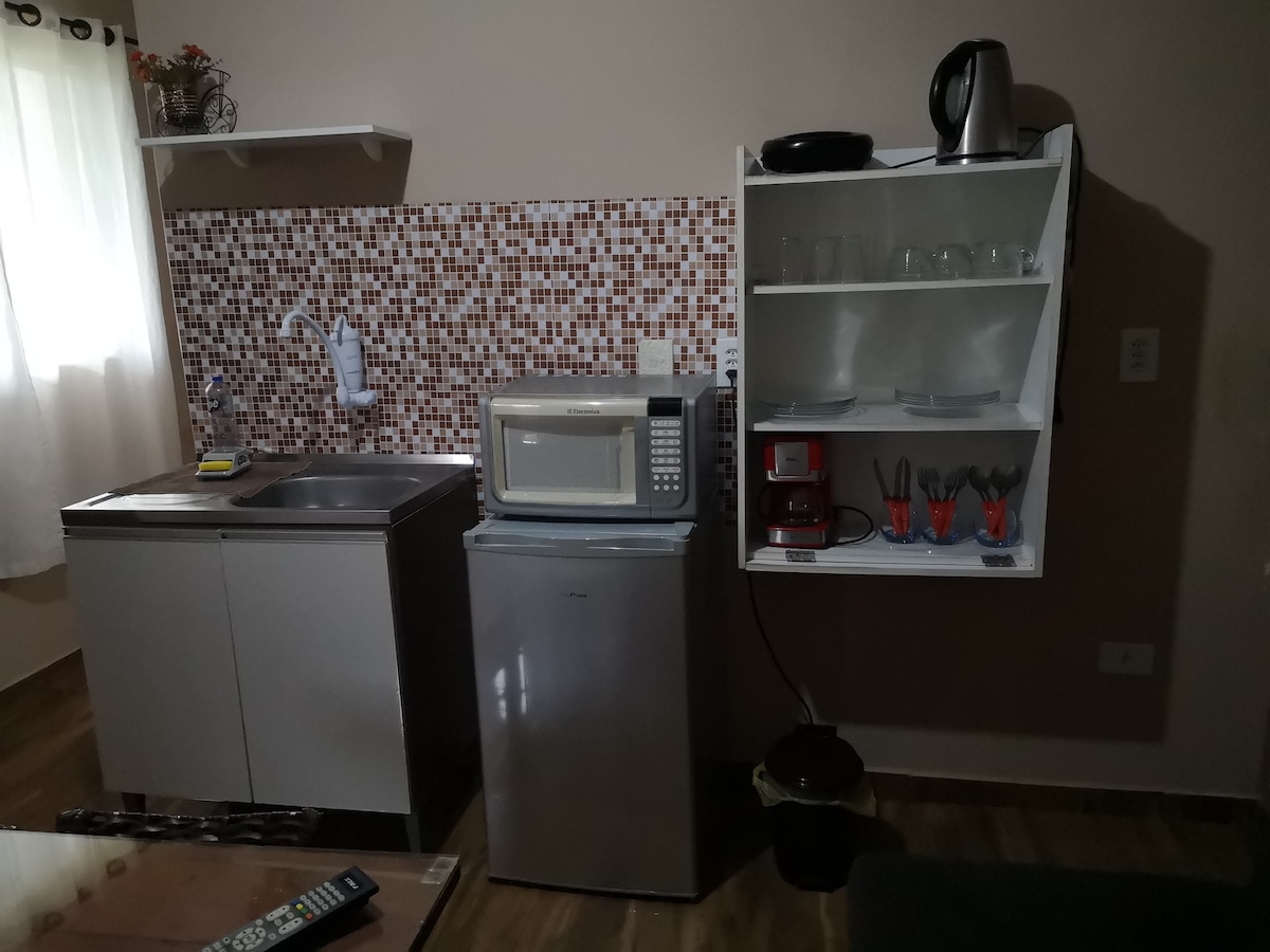 Studio prático, confortável e climatizado, com estrutura completa, ideal para quem vem ao Paraguai para compras e busca comodidade. Localizado em bairro tranquilo e seguro, a poucos minutos da fronteira, perfeito para descansar após um dia intenso de compras.