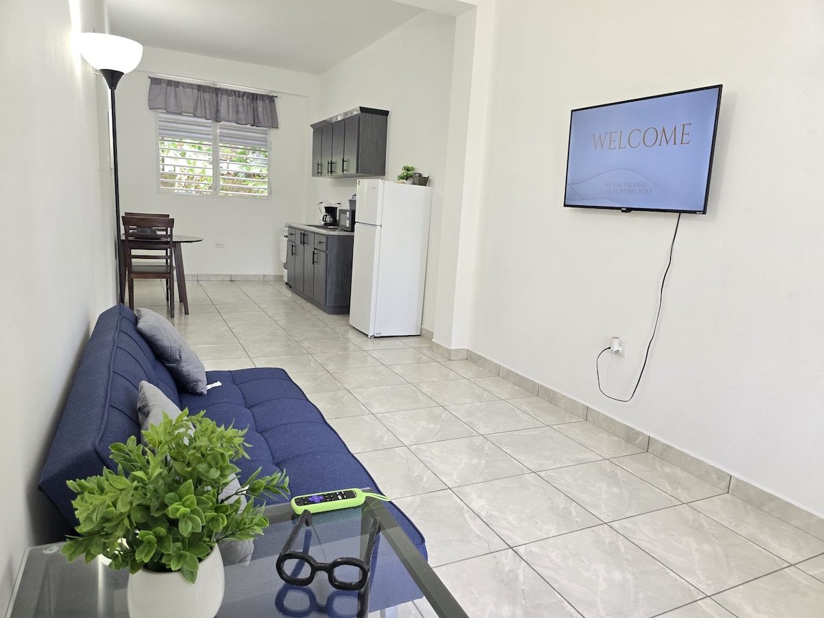 Apartamento minimalista para dos huéspedes. Es un alojamiento acogedor, ideal para una escapada corta. Completamente equipado. Habitación con cama Tamaño queen y aire acondicionado, cocina básica con microondas, sala con futón y TV con Netflix, y comedor para 2. Es un edificio con 3 apt, cada uno con área privada sin compartir zonas recreativas. A solo 8 min de Gozalandia y cerca de panaderías, farmacias y gasolineras. Perfecto para explorar San Sebastián y vivir una estadía cómoda y memorable..