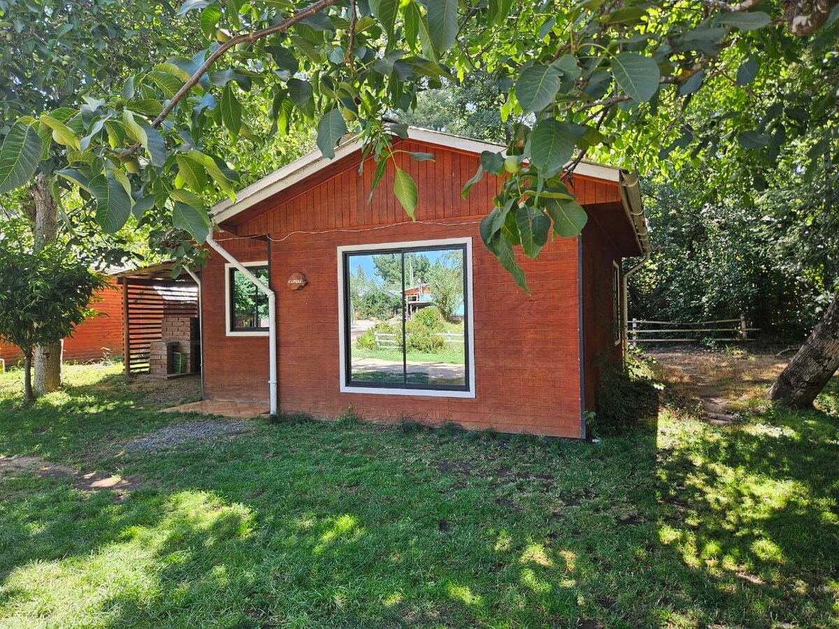 Cabaña "el Sauce" Cabaña nueva, full equipada para 5 personas, ubicada a 15 minutos del centro de Los Ángeles en condominio de parcelas, entorno seguro y amplios espacios al aire libre compartidos con dueños de casa principal. Disfrute de la tranquilidad en un entorno familiar, piscina segura (compartida con dueños de casa) , arboles frutales y 8 cámaras de seguridad al entorno para la tranquilidad del huésped.