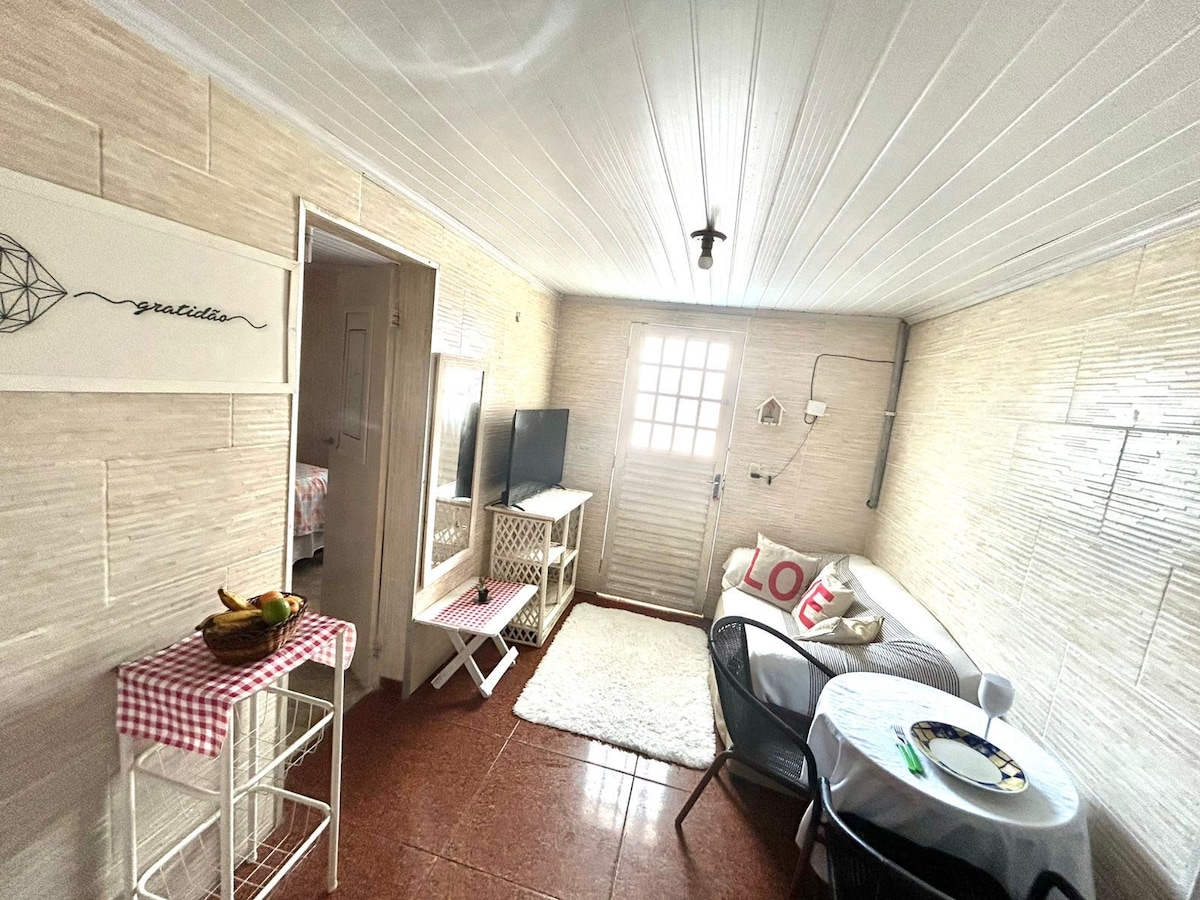 Բարի գալուստ Casinha Aconchegante՝ Մոնտե Գորդոյի ագարակ։ Իդեալական է զույգի համար ՝ ընտանեկան միջավայր ։ Գուարաջուբա լողափից մեքենայով գտնվում ենք 9 րոպե, իսկ Պրայա դու Ֆորտեից ՝ 20 րոպե ։ QUARTO - SALA COM ՝ - Երկտեղանի մահճակալ, օդորակիչ, պահարաններ, գրասեղան, Wi - Fi, սմարթ հեռուստացույց հյուրասենյակում ։ - Կահավորված խոհանոց, պատշգամբ ՝ լայն կանաչ մարգագետնին նայող խոզապուխտով ։ Առավոտյան նախաճաշը ներառված չէ։ Տարածքը կարճ է, իսկ լողափից հետո ՝ ցնցուղի լոգարան ։ 🚫 Մենք չենք ընդունում տնային կենդանուն ։