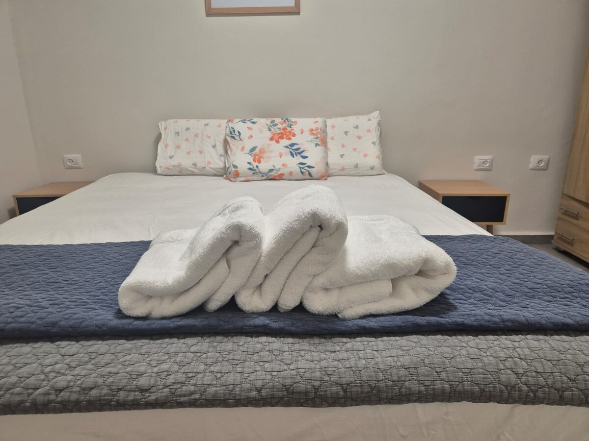 A fully renovated, spacious, beautiful apartment. located in a quiet and safe complex, just a few minutes' walk from the beach, restaurants and bars and few steps from a large supermarket. The apartment has bedroom, a living room, a dining area, fully equipped kitchen, The apartment has a balcony with stuning panoramic sea view which you can sit and enjoy eilat bay and the red mountains.