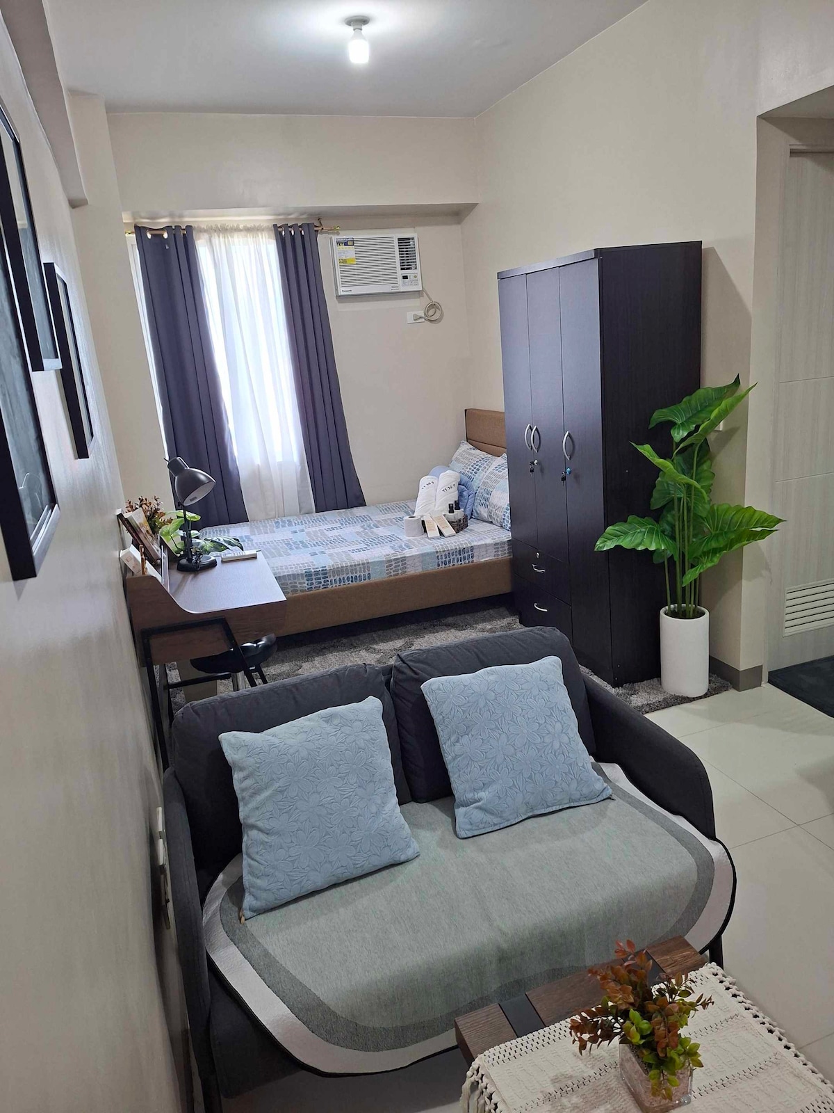ՈՒՂԻՂ ԵԹԵՐ ։ Անկախ այն բանից ՝ գործնական ուղևորության եք մեկնում, այցելում եք ընտանիք, թե ճանապարհորդում եք Ասիայով, այլևս մի փնտրեք ։ Այն, ինչ ժամանակին եղել է մեկ ննջասենյակով կոնդոմինիումը, այժմ վերածվել է ընդարձակ մեծ ստուդիայի (քառասունութ քմ )։ Գտնվելով Ֆիլիպինների ամենաբարձր բնակելի շենքերից մեկում ՝ այն կարող է լինել ձեր տունը տնից հեռու ։ Եթե ձեր ընտրած ամսաթվերն ամրագրված են, կարող եք նաև իմ պրոֆիլի տակ աչքի անցկացնել մեր մյուս կառավարվող ստուդիաները ։