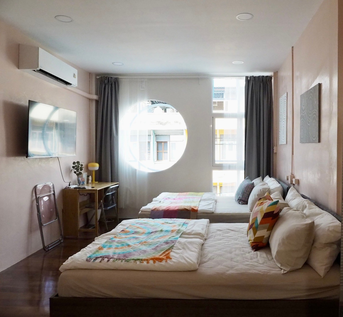 Պարզ եղեք այս խաղաղ և մշակութային վայրում ՝ 5 րոպե ոտքով դեպի Չայնա Թաուն, 5 րոպե ուղևորություն դեպի Բանգկոկի կենտրոն, 8 րոպե ոտքով դեպի Wat Mangkon MRT կայարան (BL29 )։ Համադրված տարածք, որտեղ հանդիպում են արվեստը, վինտաժային հմայքը և Բանգկոկի հոգին ։ Տեղադրված լինելով պատմական շոփհաուսի վերին հարկում ՝ այս սենյակը փայլում է օրիգինալ տեռացոյի հատակով, եղեսպակի կանաչ դետալներով և ձեռքով նկարված թաիլանդցի նկարչից, որը շերտավոր հյուսվածք է բերում յուրաքանչյուր անկյուն ։ 2 - րդ հարկ (առանց վերելակի) ** Կայանատեղ չկա կամ խնդրում ենք հարցնել նախքան ամրագրելը**