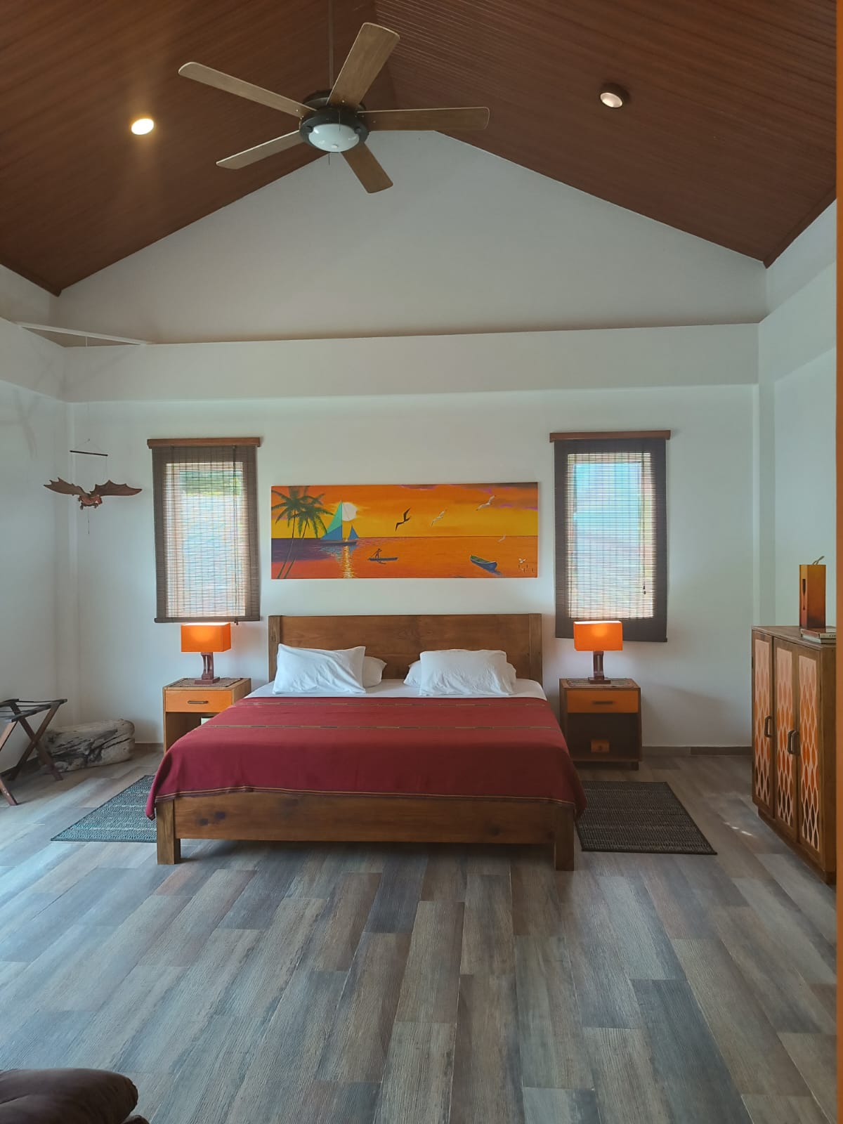 Este encantador y exclusivo espacio, ha sido creado para tu comodidad, tranquilidad y confort. Esta rodeado de naturaleza que contrasta con el mar de los 7 colores. Aquí podrás disfrutar de atardeceres mágicos y los aromas del caribe colombiano. La Habitación Agua te ofrece un amplio y cómodo lugar, con acomodación doble, de 35 m2, cama king size, balcón con hamaca, mesa y sillas y para que te deleites viendo el atardecer y los jardines de la propiedad.