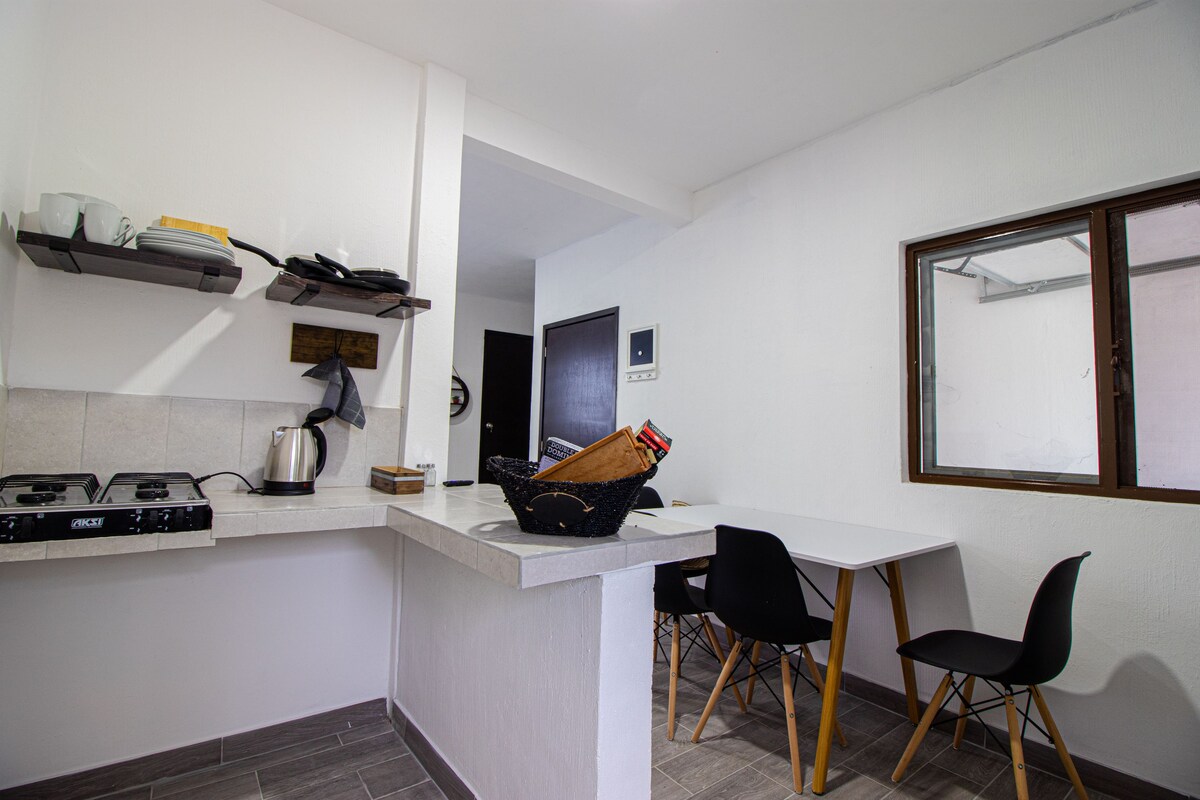 Գուաչիմոնթոնես հնավայրից մի քանի րոպե հեռավորության վրա գտնվող մեր տունն ունի ապահով ավտոտնակ, ննջասենյակ, փակ լոգասենյակ և մեկ այլ սենյակ ՝ դրսից ։ Դա ձեր կատարյալ վայրն է վայելելու համար Ժամանակակից ճաշակով զարդարված մեր ընդարձակ, բաց տունն ունի այն ամենը, ինչ անհրաժեշտ է ձեր ամբողջ խմբի համար: Հանգստացեք գեղեցիկ արահետով քայլարշավի ժամանակ գեղեցիկ գետով կամ այցելեք Թյուչիտլան գյուղի մեր տեղական արհեստագործական խանութներն ու ռեստորանները: