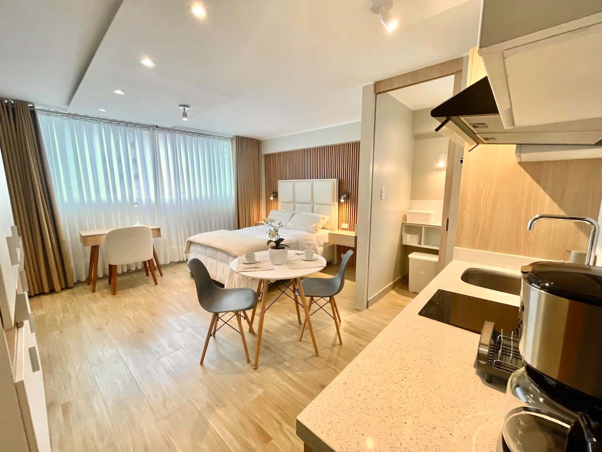 Մեր Loft - ն ունի մինիմալիստական ոճ և գտնվում է անվտանգ և ռազմավարական վայրում ՝ Սան Իսիդրոյի ֆինանսական կենտրոնի մոտակայքում ։ Արամբուրուի Մետրոպոլիտեն կայարանից մի քանի քայլ հեռավորության վրա ։ Այն ունի ամբողջական առանձին լոգասենյակ, խոհանոցիկ և աշխատանքային տարածք ։ Ձեզ դուր կգան նրա վիսկոելային բարձերը և ներքնակը, որտեղ դուք չեք ցանկանա հանել, շատ հարմարավետ է քաղաքում հաճելի հանգստի համար: Այն ունի թերմոակուստիկ պատուհաններ և սև վարագույրներ ։ Ամենալավն այն է, որ այն մոտ է այն ամենին, ինչ կարող եք պատկերացնել ։