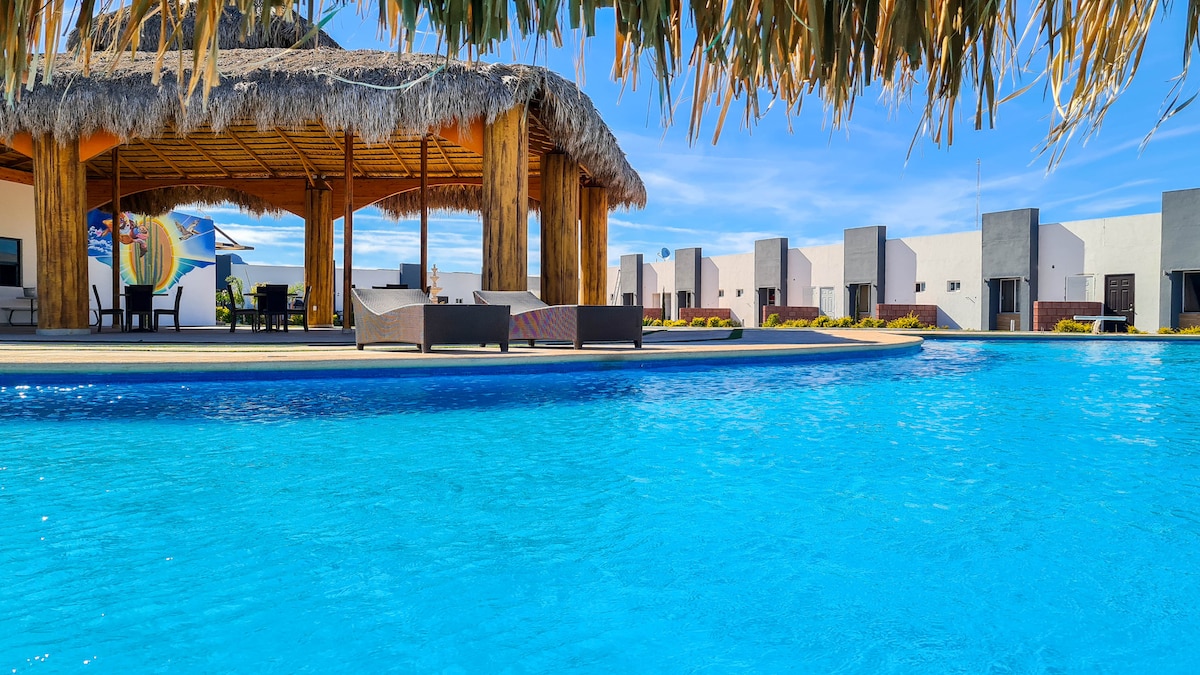 Բարի գալուստ մեր լողափնյա կոնդոմինիում, որը կատարյալ վայր է շքեղությամբ և հանգստով լի ընտանեկան հանգստի համար: Մեր կոնդոմինիումն առաջարկում է արտոնյալ վայր ՝ Կորտեզի ծովի տպավորիչ տեսարաններով և ուղիղ մուտք դեպի լողափ ։ Այստեղ կարող եք արթնանալ ալիքների ձայնից և վայելել հիանալի մայրամուտները ձեր պատշգամբի հարմարավետությունից: Նախագծված լինելով ձեր հարմարավետության համար ՝ այն ձևավորված է ժամանակակից և հարմարավետ երանգով ՝ ձեզ անմոռանալի տպավորություններ պարգևելու համար ։
