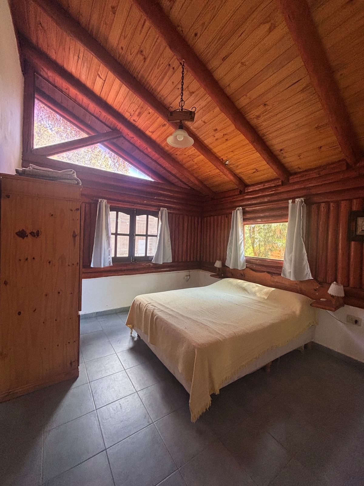 Sin ropa de cama ni toallas Limpio, cálido, comodo. Ademas durante su estadia van a convivir con un casal (pareja) de zorzales colorados. Ellos tienen su nido en la arboleda aledaña a esta vivienda desde hace varios años. A lo largo del dia los van a ver recorriendo el patio en busca de lombrices, ensentos, etc. Y alrededor de las 5 am se encargan de anunciar el amanecer con su trinar. Disfruten de su compañia. Muchas gracias.