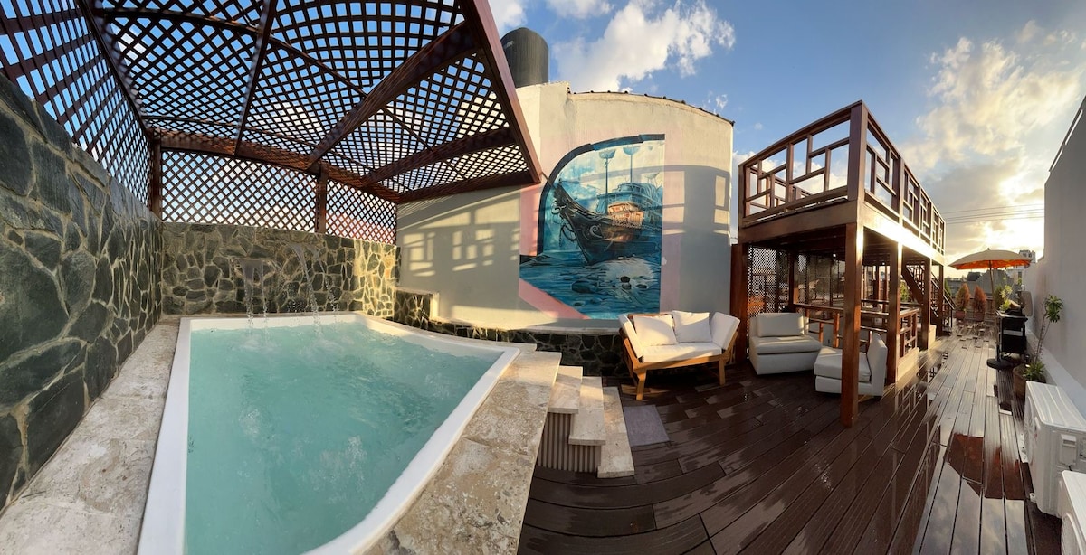 Your luxury oasis 13 minutes from the Colonial Zone! ✨ Relax in your private Jacuzzi or enjoy a BBQ on the exclusive terrace. Designed for rest and productivity: • 🛏 Premium King Bed. • ❄️ Total A/C and fast Wi-Fi (ideal Home Office). • 🍳 Full kitchen and Smart TV. • 🚗 Private and secure parking. Strategic location: close to supermarkets and restaurants. Perfect for digital nomads, couples or long stays. Book your experience today! 🥂