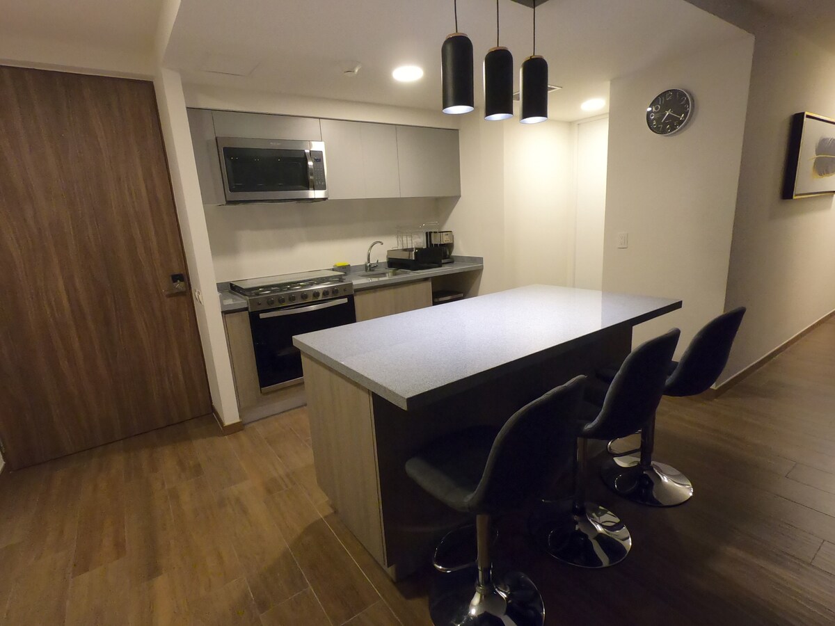 Ռոմա Նորտի այս նորաոճ բնակարանն առաջարկում է կատարյալ կարգավորում թվային քոչվորների համար ՝ գերարագ Wi - Fi, խնամված աշխատանքային տարածք և աստիճաններ Կոնդեսայի ամենաթրենդային սրճարաններից, ռեստորաններից և գիշերային կյանքից: Վայելեք բարձրակարգ հարմարություններ ՝ բիզնես կենտրոն, ամբողջական մարզասրահ, խաղասենյակ և ցնցող տեսարաններով տանիք ։ Մնացեք արդյունավետ, ոգեշնչվեք և զգացեք CDMX - ը տեղացու պես ։
