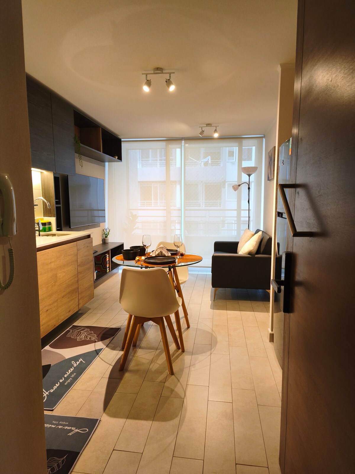 🎶 Իդեալական է համերգների համար. ժամանակակից բնակարանի աստիճաններ Կաուպոլյանի թատրոնից ՝ մասնավոր կայանատեղիով և Metro Parque Almagro - ով ՝ ընդամենը 2 րոպե հեռավորության վրա ։ Կենտրոնական, անվտանգ և կապակցված վայրը ՝ սուպերմարկետներին, դեղատներին, համալսարաններին և Ալմագրո զբոսայգուն մոտ ։ Կատարյալ է շոուից հետո հանգստանալու կամ Սանտյագոյի հետ ոտքով ծանոթանալու համար ։ Այն ներառում է Wi - Fi, կահավորված խոհանոց և քաղաքի հիմնական զբոսաշրջային տեսարժան վայրերից օգտվելու հնարավորություն ։