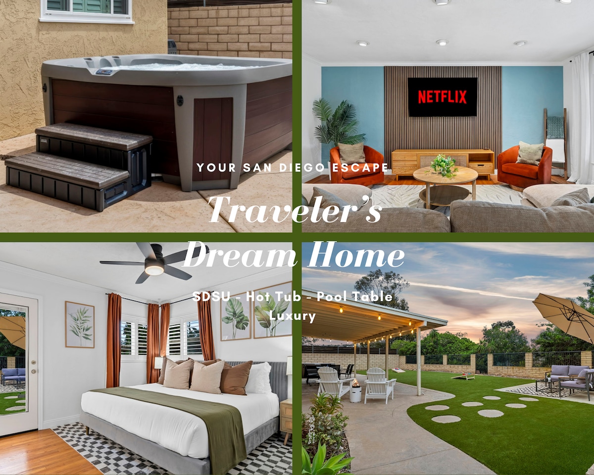 Traveler’s Dream Home SDSU • Hot Tub, Pool Table