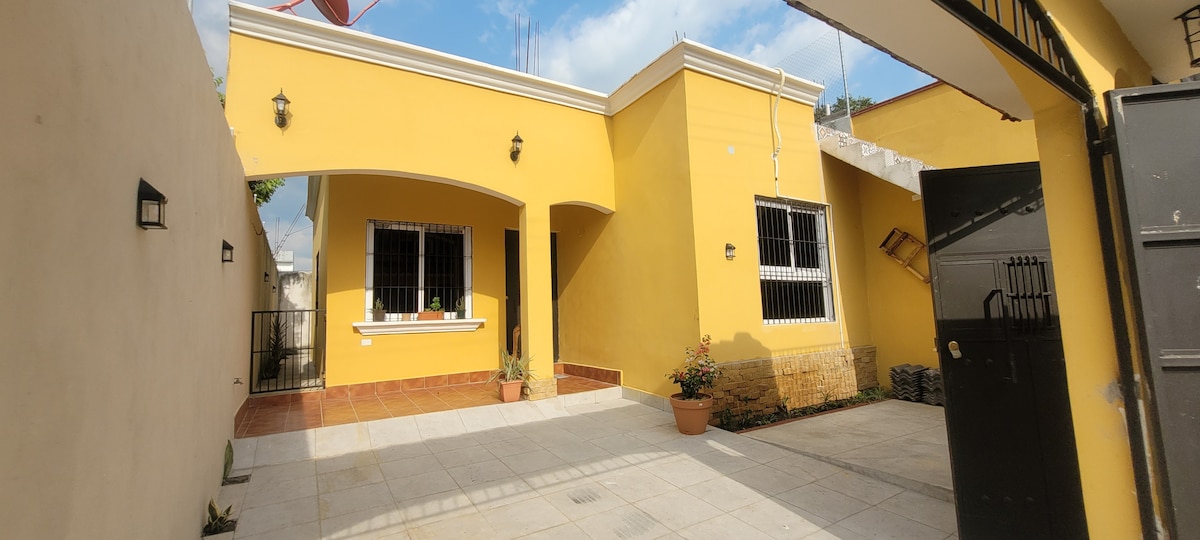 Casa Completamente Equipada y dentro de residencial privada por lo que LAS FIESTAS ESTÁN PROHIBIDAS. Seguridad las 24 hrs. Ingreso autónomo con código. Casa y Piscina Desinfectada antes de su llegada! A 7 min/5 Km de Xetulul Xocomil Dinopark . Aire Acondicionado , Wifi, Piscina con vista 360° Rooftop , Churrasquera con Vista a los Volcanes . 7 minutes From Recreational Parks , A/C , Wi-fi, Rooftop 360° View Pool, Grill, PARTIES NOT ALLOWED 24 Hrs Security , Self Check in/Out , Sanitized !