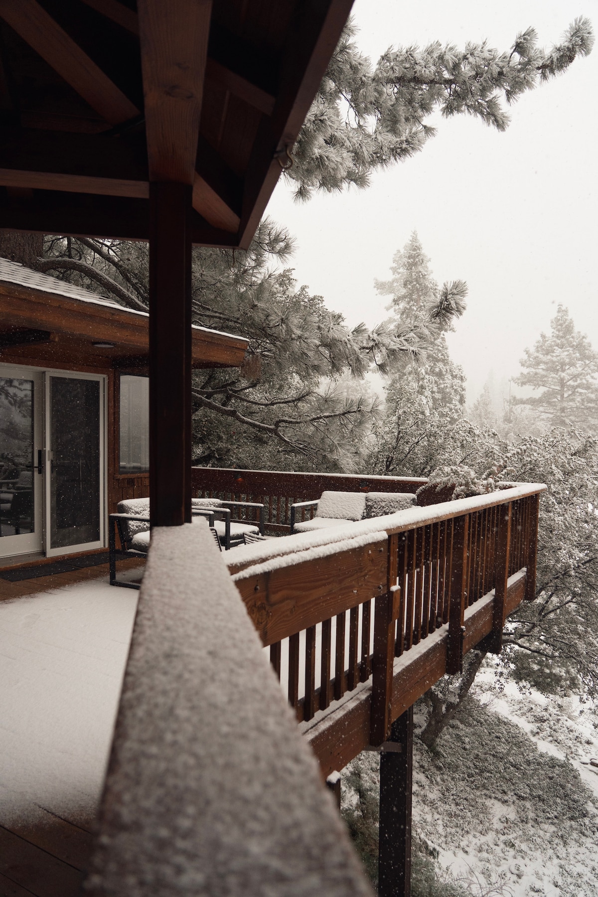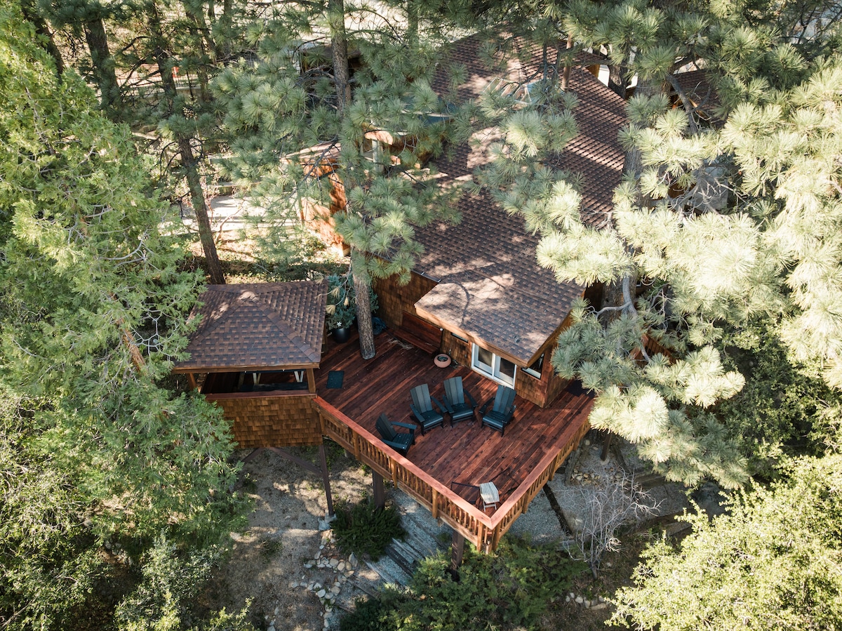 Perched բարձր Idyllwild - ի North Ridge - ում, Treetop Terrace - ը նստում է կաղնու ծառերի հովանոցի մեջ և առաջարկում է զարմանահրաշ տեսարաններ իր ընդարձակ վերին տախտակամածից: Վայելեք իր միջնադարյան ճարտարապետության և խաղողի բերքահավաքի ոգեշնչված կահավորանքի հմայքը ։ Առանձնահատկությունները ներառում են հատակից մինչև առաստաղ ձգվող պատուհաններ, բաց հատակագիծ, հանգստի սենյակ և անվասայլակի հասանելիություն ։ Հարմարավետորեն գտնվում է գյուղից 3 րոպե հեռավորության վրա, հեշտ է վայելել Իդիլվիդի հմայքը և գեղեցիկ Սան Ժասինտո լեռները Treetop Terrace - ից: