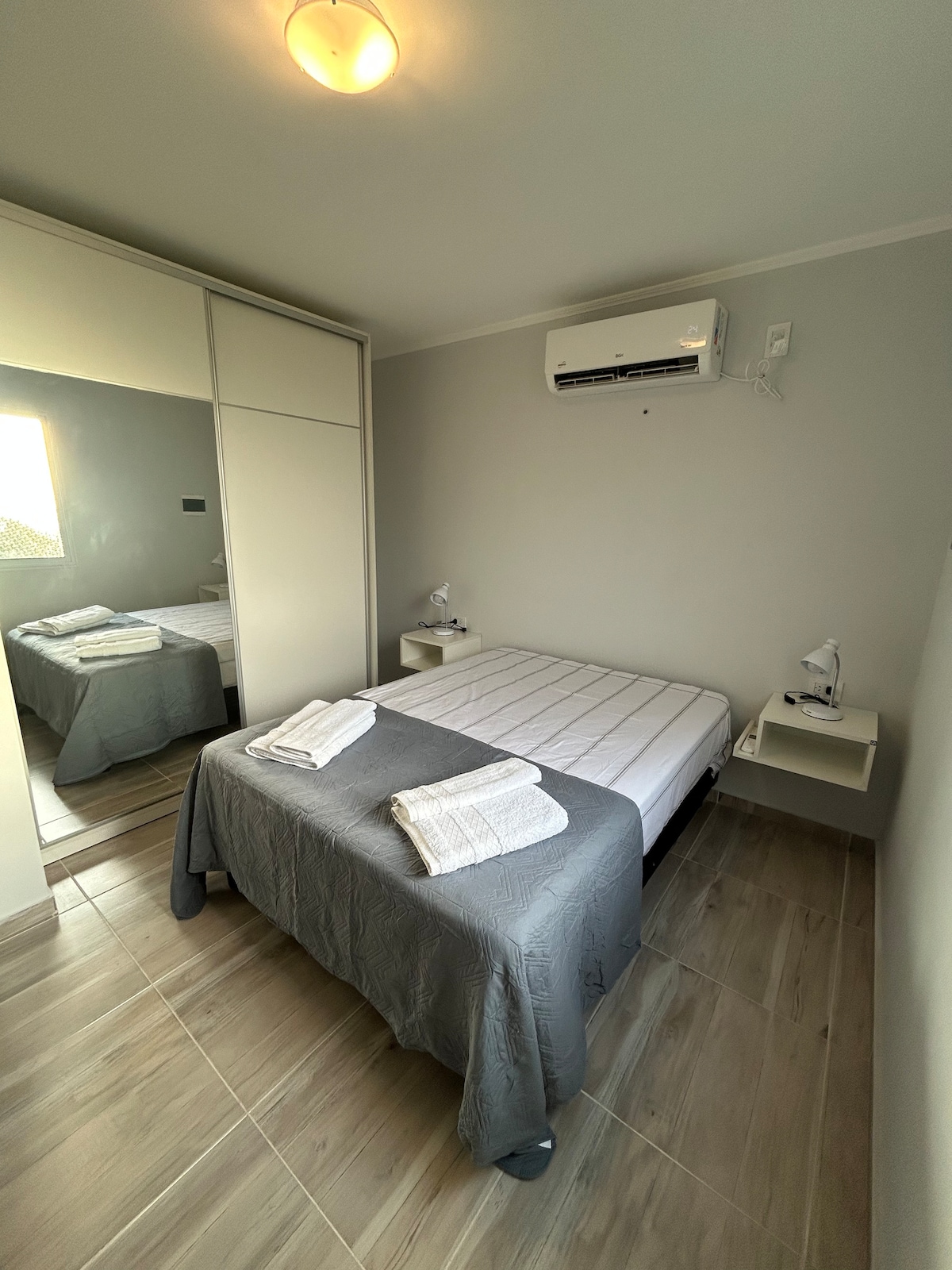 El departamento que ofrezco es cálido para que los huéspedes se sientan como en su casa y quieran volver. Tiene servicios básicos: aire acondicionado frío- calor, wifi, televisor, cocina y utensilios (olla sartén cubiertos fuentes vasos juguera y pava eléctricas), lavarropas, secarropas, tender, almohadas, mantas, ropa de cama, agua caliente, secador de pelo, bidé, cochera c/portón de apertura y cierre automáticos. La estadía incluye desayuno seco.