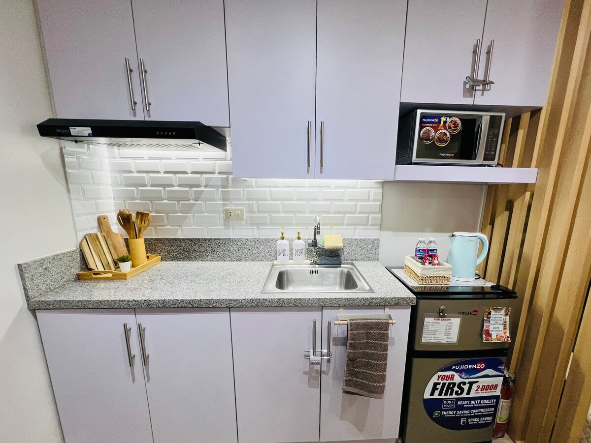 A cozy modern Scandinavian/tropical retreat nestled in the heart of the city. This is a place where you can relax, unwind and have fun with your loved ones or just by yourself. The living area is adorned with light-colored wooden floors, providing a warm and welcoming ambiance. Furnished with simple yet stylish Scandinavian/Tropical furniture. The kitchen is fully functional. Equipped with all your cooking needs. The bedroom’s minimalist design will for sure give you a restful night’s sleep.