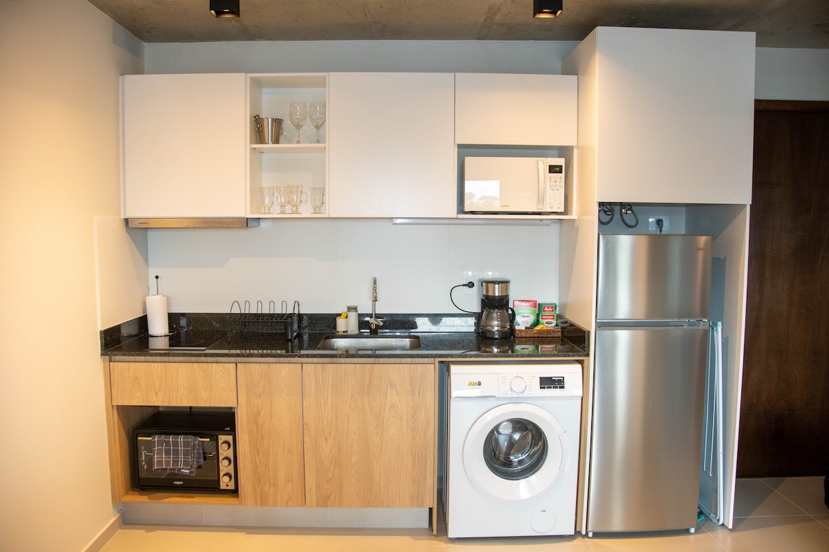 Այս ժամանակակից 1 ննջասենյակով բնակարանը Ասունսյոնի սրտում, որը գտնվում է կորպորատիվ առանցքի վրա գտնվող Shopping del Sol - ից ընդամենը 50 մետր հեռավորության վրա, կատարյալ վայր է նրանց համար, ովքեր փնտրում են հարմարավետություն, ոճ և անմոռանալի վայր: Ննջում է մինչև 4 հյուր ՝ այս տարածքը նախատեսված է ձեզ յուրահատուկ փորձառություն առաջարկելու համար ՝ լինի դա բիզնեսի, թե հաճույքի համար ։ Այն նախատեսված է ձեզ համար, որպեսզի վայելեք քաղաքը ՝ ձեր ձեռքի տակ ունենալով այն ամենը, ինչ ձեզ հարկավոր է: