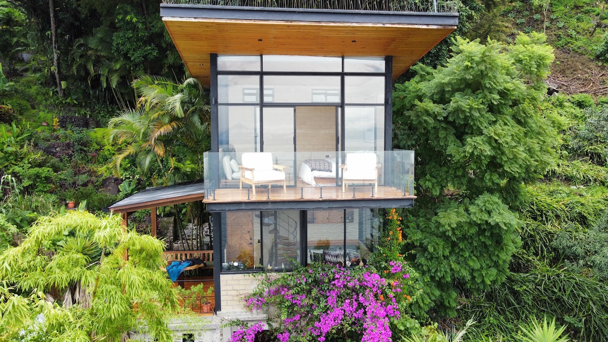 Շատ յուրահատուկ և ժամանակակից շքեղ տուն Գվատեմալյան լեռնաշխարհում ՝ երկնքում լողալու զգացողությամբ (1700 մ) - Ջերմաստիճանի անխոչընդոտ կապը ՝ 24 ժամ անխախտ էլեկտրաէներգիայով (լիթիում/արևային) - Բոլոր պատուհանները լիովին բաց են ՝ ողջունելու 5 վուլկանոների շնչառական տեսարանները և անընդհատ փոփոխվող «նկարչության» «անեզր լիճը» - Զտված աղբյուրի ջուր հպակի վրա - Լոգասենյակի ջակուզի ՝ փակ կամ բաց դռների համար -12 մ2 կանտիլեվեդ ցանցաճոճ տախտակամած ՝ աստղագուշակության և հանգստի համար