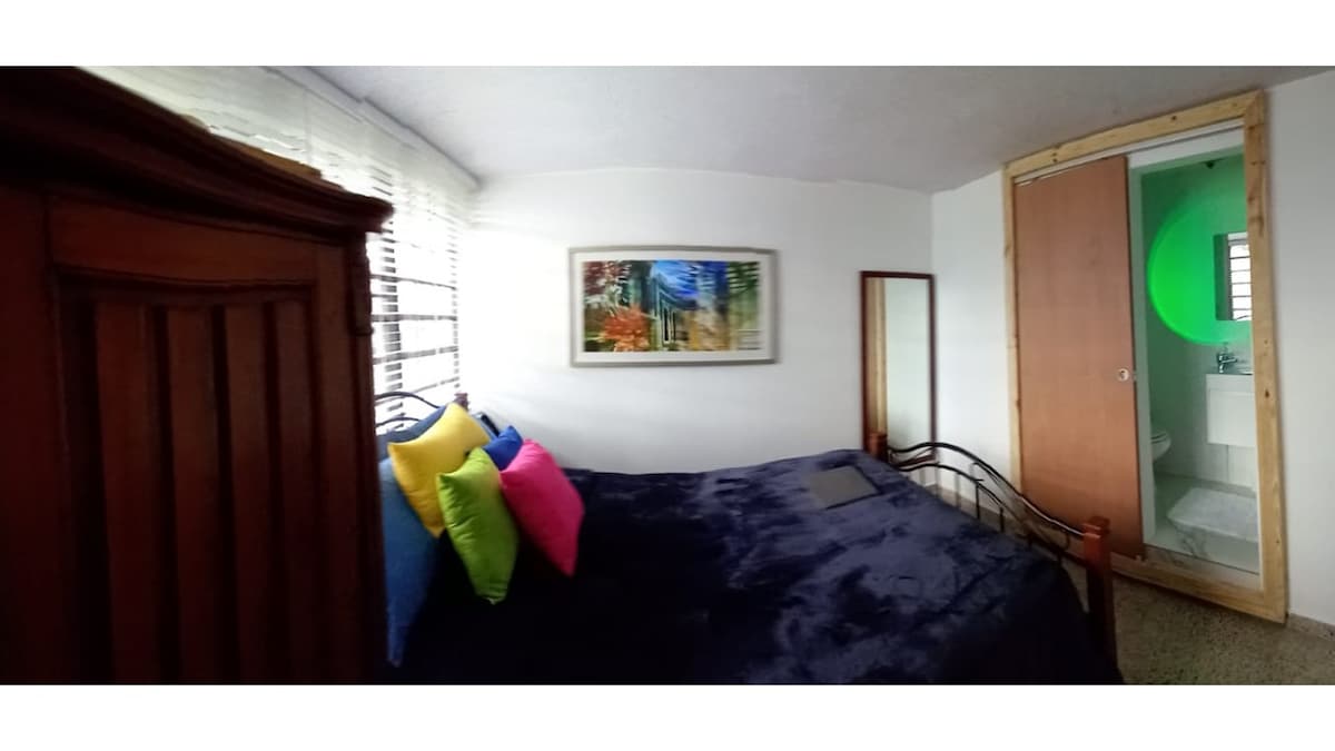 Ապահով տարածք՝ մշտապես բնակվող հյուրընկալողով, Սան Խուանում իմաստալից այցերի համար։ Ձեր առանձին ննջասենյակը և լոգասենյակը իմ համակեցության տանը։ Մի ընտրեք անանձնական հյուրանոցներ, այլ՝ անկեղծ շփում։ Բացահայտեք Պուերտո Ռիկոն բնությունը սիրող հյուրընկալողի և երկու փրկարար կենդանիների հետ։ Մարմարե սալիկապատ հատակ, խոհանոց՝ թափոնների նվազագույն քանակությամբ, Berkey ֆիլտրացված ջուր, 11 րոպե քայլելու հեռավորության վրա լողափից։ Սա իսկապես հյուրընկալ տարածք է, որտեղ ձեր իրական «ես»-ը ոչ միայն ողջունելի է, այլև ճանաչված և տոնված։ Համայնքի ապաստարան՝ հասկացողների համար։