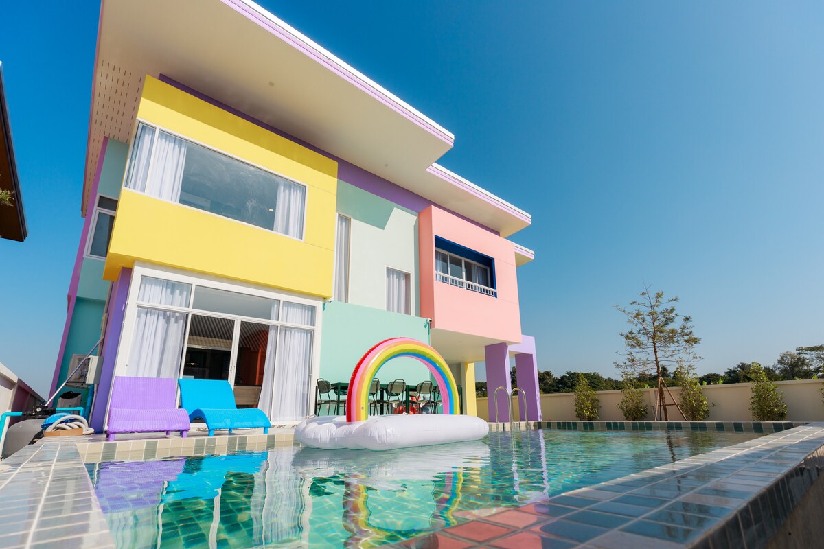 Գունագեղ խաղային տնակ՝ մասնավոր լողավազանով