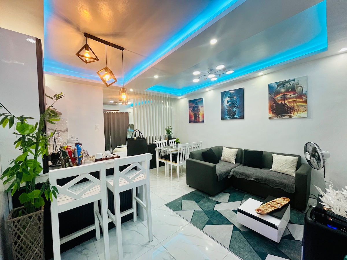 Amenities: -Outdoor CCTV -Key- secured gate -Smart lock door access -Terrace / coffee area -Comfortable living area -Fully equipped kitchen -Dining area -Snack/wine bar area -Air-conditioned bedroom (Queen size bed) 📚 Study den 🛀🚿Bathroom with bathtub and shower 🚽 Separate restroom 📺 55” Smart TV 🛜 FREE WIFI 🍿NETFLIX 🎲♟️board games 🎤 Bluetooth Party Karaoke ⏲️ microwave oven 🍃🧖♀️Guest essentials: 🧂FREE condiments ☕️FREE coffee 💧FREE drinking water 🧴FREE toiletries