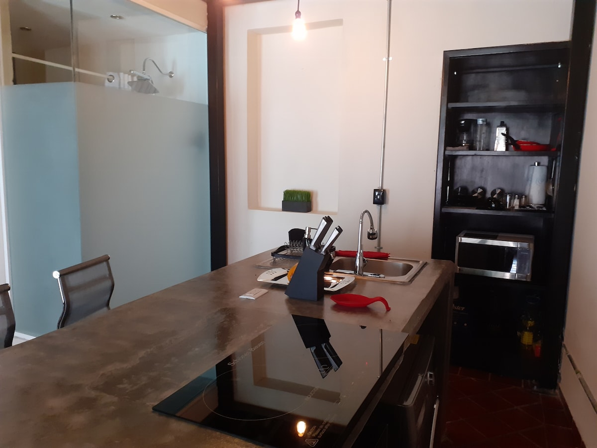 El Loft Vive es un espacio agradable para dos personas y un menor, se encuentra en una casa antigua en el centro histórico de la ciudad, es un espacio intimo y privado, cuenta con una cama Queen size, un sofá cama, baño completo, cuenta con cocina equipada, con todo lo que necesites para cocinar, también tiene desayunador. Hay que considerar que se encuentra en un tercer piso y no contamos con elevador, pero esto se compensa con la hermosa vista que podrás disfrutar en la terraza (area comun).