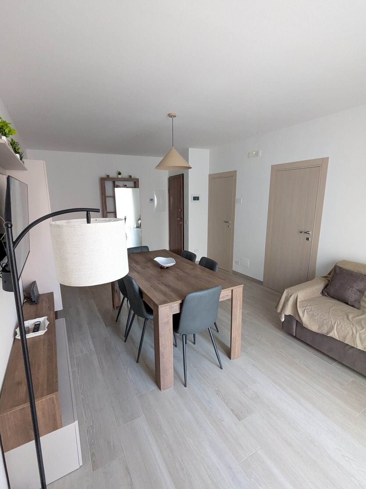 L’appartamento è stato recentemente ristrutturato e si trova a 5 minuti dal centro. L'ambiente é molto luminoso e ampio con un arredo in stile moderno, ideale per accogliere famiglie o coppie. E’ dotato di 5 posti letto con possibilità di aggiunta culla o lettini, fino a 7 posti. L'alloggio é composto da cucina, soggiorno, 2 camere matrimoniali, 1 stanza singola con annessi balconi indipendenti e 2 bagni condivisibili Dotato di tutti i comfort per rendere il tuo soggiorno piacevole e accogliente