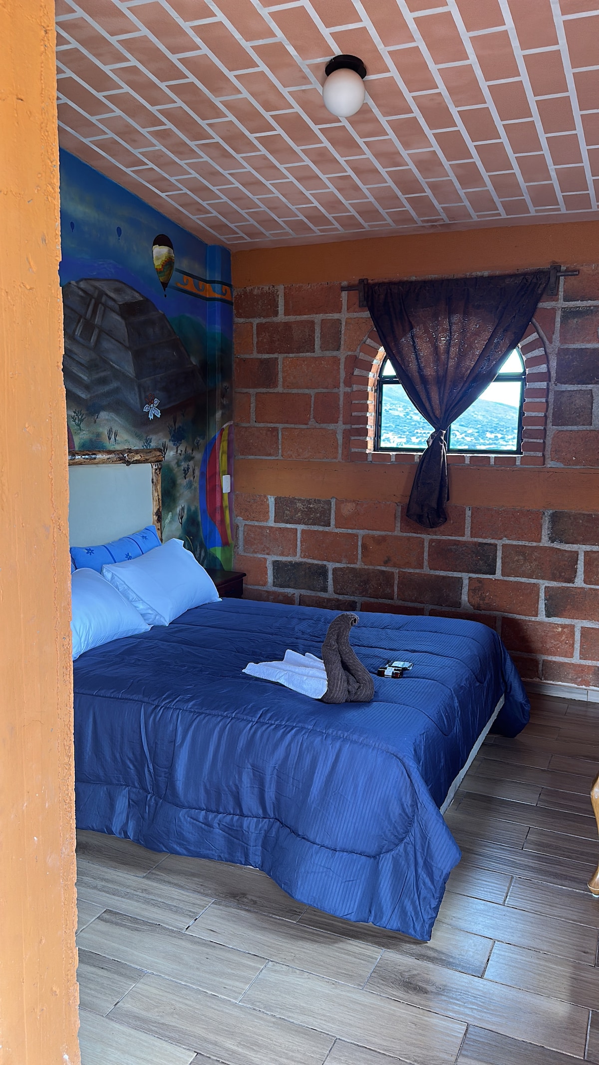 Disfruta una experiencia superior en nuestra habitación King del Hotel Boutique Piedra y Altura, en Teotihuacán, a minutos de la zona arqueológica. Ideal para parejas, cuenta con cama King, baño privado y un ambiente elegante que combina diseño artesanal y confort moderno. Relájate después de explorar las pirámides y vivir experiencias únicas como vuelos en globo. Perfecta para descanso y comodidad.