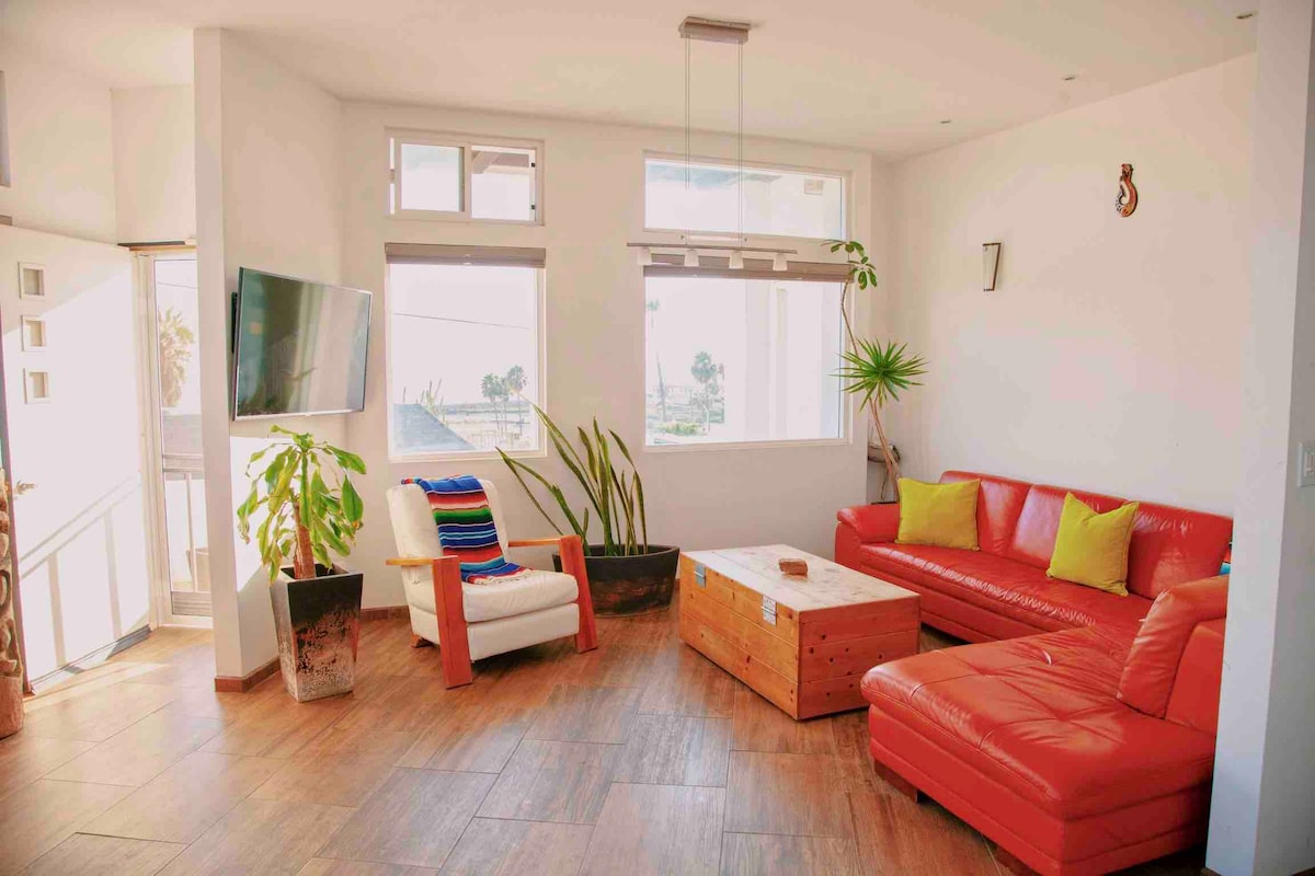 This is a beautiful, romantic and quiet place with a huge deck that feels like you are in the Ocean, literally the waves break right in front of the Deck, no other place like this ideal for couples. it is 5 minutes away from downtown and 20 minutes from valle de Guadalupe, very Close to the best restaurants in Town ,surfing spots, tacos, breweries, super markets and gas Station. You can literally admire the ocean from every spot in the apartment.
