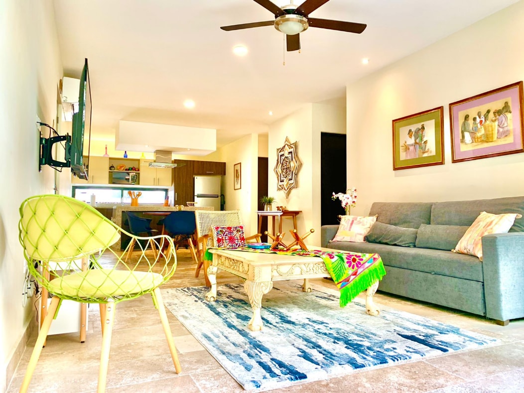 Gema's Studio in Casa Xel-Ha has everything you need to enjoy your stay in this tropical paradise. Fully equipped spaces. Just 2 blocks from the main avenue and the sea, 1 block from the shopping center, the area is very quiet for the good rest of the guests/Beto's Studio en Casa Xel-Ha será el lugar ideal para tu estadía en la isla. Espacios totalmente equipados para la tranquilidad de los huéspedes. A tan solo 2 cuadras de la avenida principal y del mar, a 1 cuadra del centro comercial.