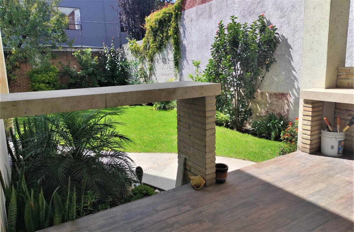 Բունգալոն իդեալական է բոլոր տեսակի հյուրերի, ընտանիքի կամ ընկերների հետ ուղևորությունների համար: Այն ունի մեծ այգի ՝ պալապայով և գրիլի տարածքով: Տարածքը շատ հարմարավետ է և ունի այն ամենը, ինչ անհրաժեշտ է հիանալի հանգստի օր անցկացնելու համար ։ Գերազանց տեղադրությամբ և դեպի Պուեբլա և Չոլուլա տանող հիմնական մուտքի ճանապարհներով ։ Բացի այդ, 5 րոպե քայլեք Չոլուլայի ամենակարևոր առևտրային հրապարակներից մեկը: Եվ 10 րոպե մեքենայով Չոլուլայի բուրգից: Բացի այդ, այն լիովին հարմար է տնային կենդանիների համար ։