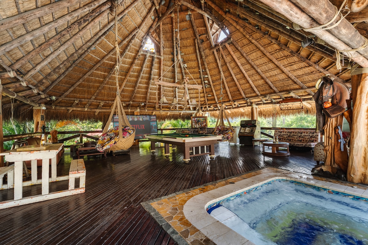 Ապրեք անմոռանալի օրեր բնությամբ շրջապատված այս գեղեցիկ կալվածքում, որը կատարյալ է հանգիստ, առանձնություն և հյուրընկալ մթնոլորտ փնտրող ընտանիքների, խմբերի կամ զույգերի համար 4 ննջասենյակով և 4 լոգասենյակով դուք կվայելեք հանգստանալու և կիսվելու համար նախատեսված տարածքները ՝ • 🛁 Լեռների տեսարաններով ջակուզի և լողավազան • լողավազանի 🎱 սեղան և խաղեր • 🐴 Ագարակ, լիճ և ձի • 📶 Wi - Fi ։ • 🍽️ Կահավորված խոհանոց և խորովածի տարածք Իդեալական է հանգստի, տոնակատարությունների կամ անջատման համար բնական միջավայրում, որն ունի ամեն ինչ