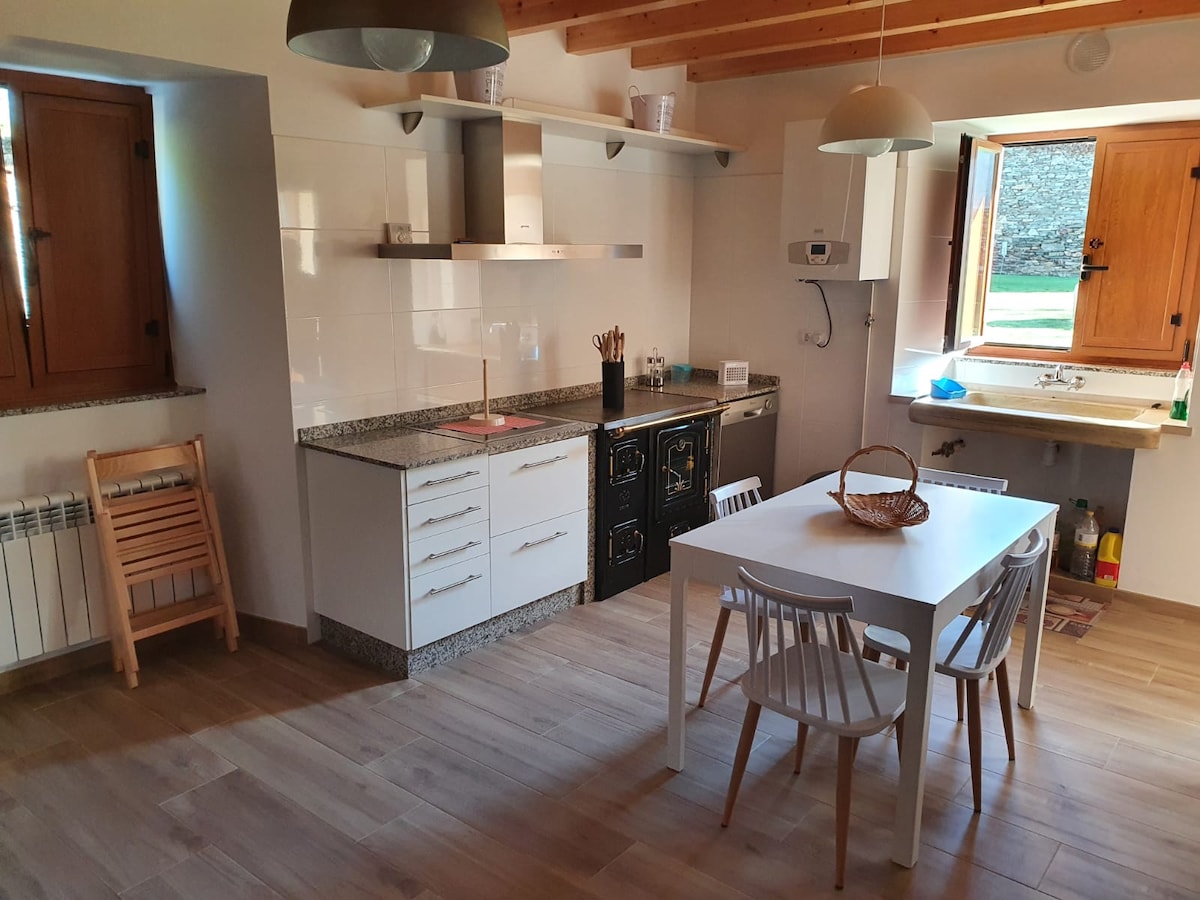 Casita de campo con 3 habitaciones, 1 salón, cocina, baño y estancia cubierta para dejar el coche. A compartir con los anfitriones las lavadoras (que están en una estancia independiente de la casa) Hay barbacoa portatil. NO HAY CALEFACCION NI WIFI . La aldea es muy tranquila, idónea para relajarse y desconectar, aunque a tan solo 1 min del pueblo (1km )donde hay supermercados, servicios y piscina municipal. Las playas de burela, cangas y fazouro están a 10min y foz a 20min. PROHIBIDO GATOS!!