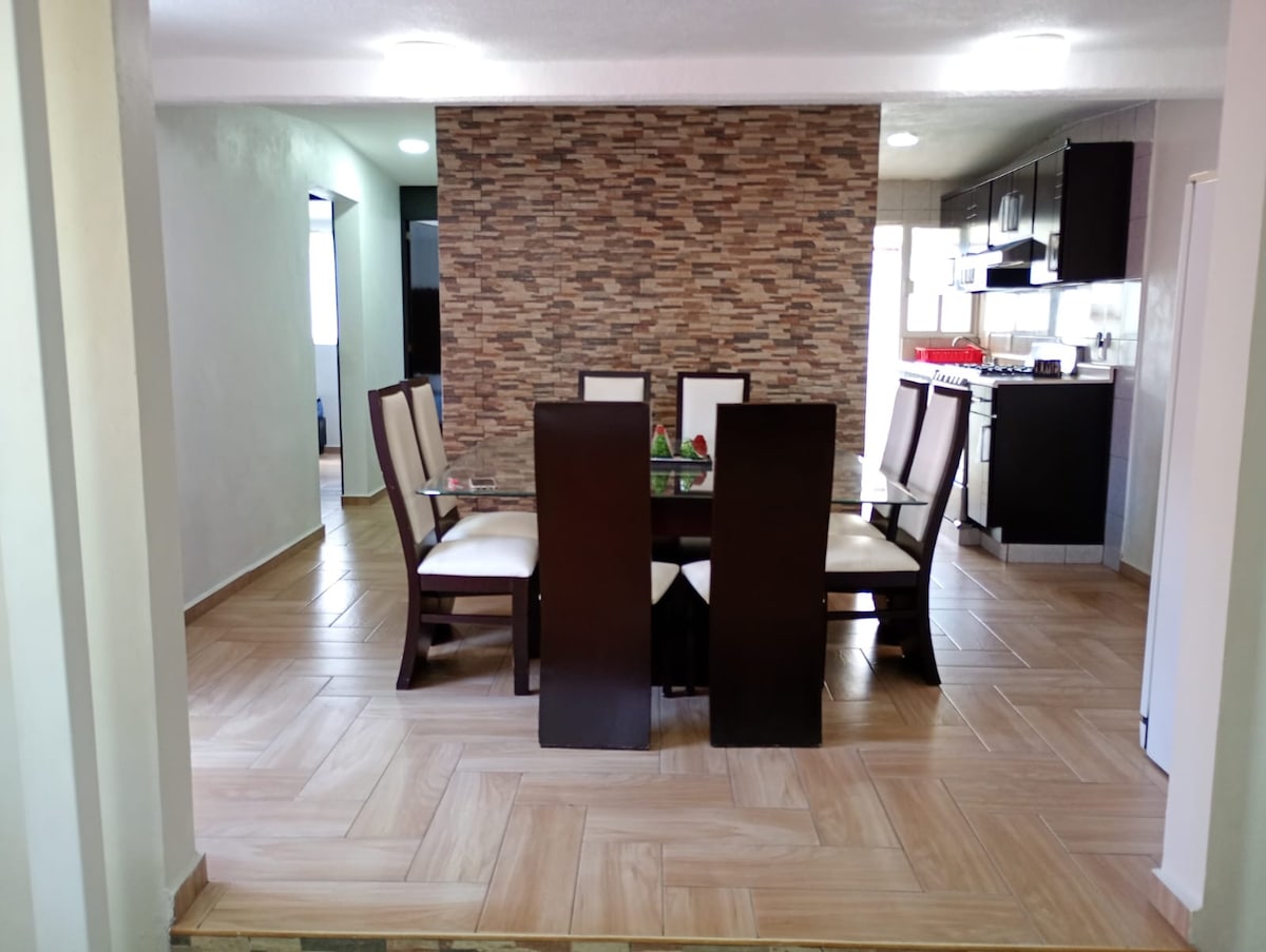 Գեղեցիկ տուն միայն կոտորակում ՝ 24x7 անվտանգությամբ, Տոլուկա օդանավակայանից 15 րոպե հեռավորության վրա և Մետեպեկի տիպիկ կենտրոնից 5 րոպե հեռավորության վրա ։ Երեք ընդարձակ ննջասենյակ ՝ մինչև 6 հյուր ՝ հաճելի տարածքներով ՝ հանգստանալու կամ աշխատելու համար ։ Շքամուտքն ու պարտեզը բացառիկ հանգիստ և հանգստացնող են ։ Խոհանոցում կա այն ամենը, ինչ անհրաժեշտ է ամբողջ ընտանիքի համար համեղ և պարզ սնունդ պատրաստելու համար: Բացի այդ, այն ունի հյուրասենյակ, ճաշասենյակ, հեռուստացույցի սպասասրահ և կայանատեղի մինչև 2 մեքենայի համար ։