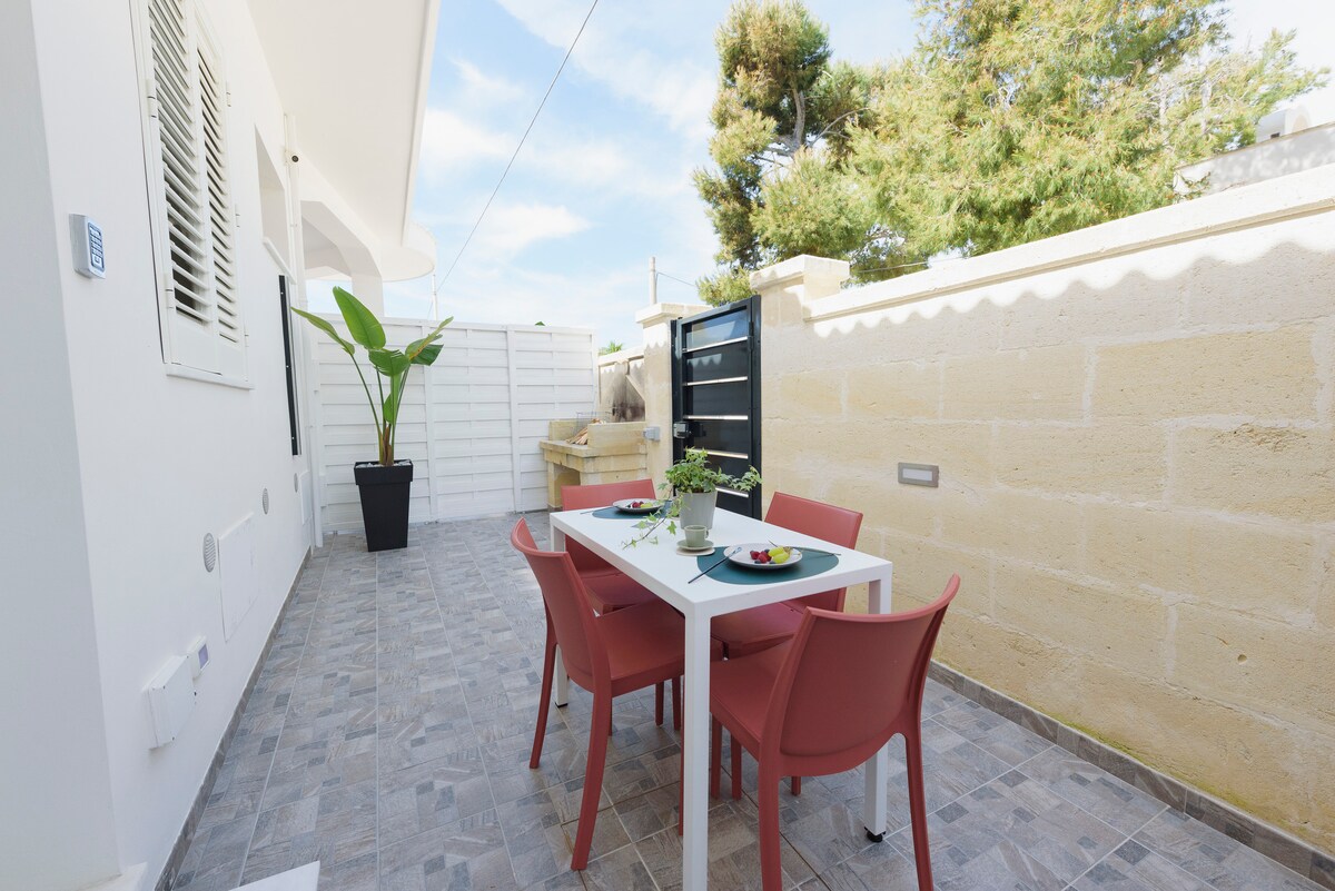 Abitazione a 200m dal mare zona scogliosa ma con bellissimo mare se andiamo verso sinistra circa 350 m trovate solo spiaggia. Appartamento arredato compreso di lenzuola ed asciugamani con cucina all’esterno sotto la veranda.Si trova ubicato dentro un recinto dove ci sono altre 3 case distante tra loro ,ognuna con la sua area privata è veranda.Dietro le 3 abitazioni c’è un grande giardino e piazzale per posto auto , ideale per prendere il sole oppure pranzare ..è può essere utilizzato per tutte le abitazioni. Barbecue disponibile per tutti. Nell’aria circostante troverete tutto ciò che è indispensabile. Negozio di alimentari a 150m , macelleria , bar , fruttivendoli, tabaccheria e ristoranti ecc.. A pochi km da San Pietro in Bevagna , Torre Colimena. Circa 50 km da Lecce , Gallipoli e 23 km da Porto Cesareo. Ideale per coppie!!