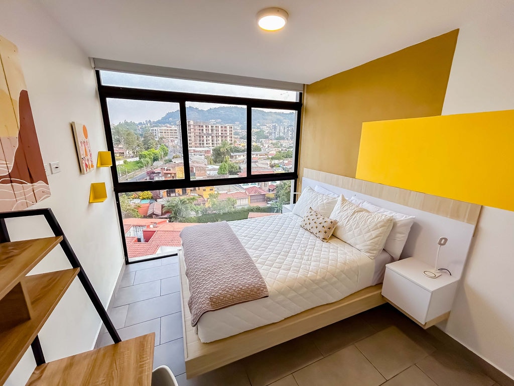 Experience San Salvador from a modern retreat in the exclusive Avitat Joy tower. This stylish 2-bedroom apartment offers breathtaking panoramic city views from a private balcony. Perfect for 2-4 guests, it includes access to a pool, gym, rooftop terrace, and coworking space. Located in the prestigious Lomas de San Francisco, you're minutes from top dining and shopping. Includes two free parking spaces.