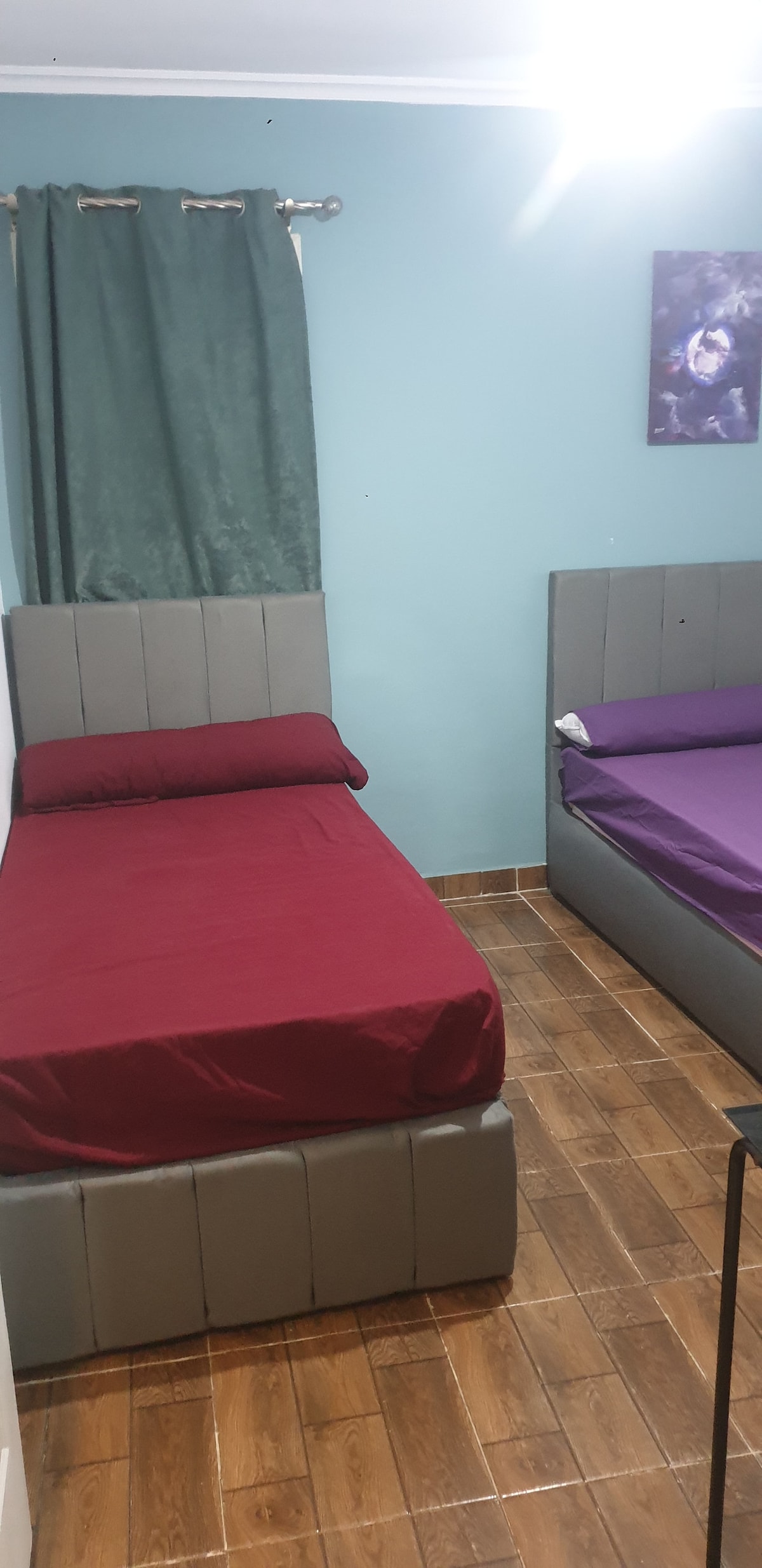 Հարմարավետ սենյակ ծովի ափին, Հիլթոն հյուրանոցի և Ալեքսանդրիայի սրտում գտնվող չորս սեզոնանոց հյուրանոցի միջև ( առանց տեսարանի ), առանձին մուտք ՝ առանձին լոգասենյակով, օդորակիչով, հեռուստացույցով, թեյնիկով և անվճար Wi - Fi - ով, այն նման է գեղեցիկ շենքում գտնվող առանձին բնակարանի, լիակատար առանձնության, գեղեցիկ թաղամասի, դեպի լողափ տանող մի քանի քայլ, ամեն ինչ նախատեսված է հարմարավետ լինելու համար ։
