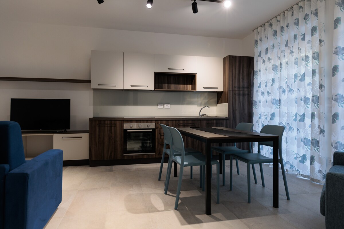 Appartamento nuovissimo in zona centrale a due passi dal mare per godere di una vacanza all'insegna del comfort. Il quartiere è completamente servito, la spiaggia è a 300 metri. L'appartamento è perfettamente coibentato, insonorizzato e climatizzato ed arredato con stile moderno e personalizzato; completamente accessibile anche a portatori di handicap, con bagno con ausili e piatto doccia filo pavimento.