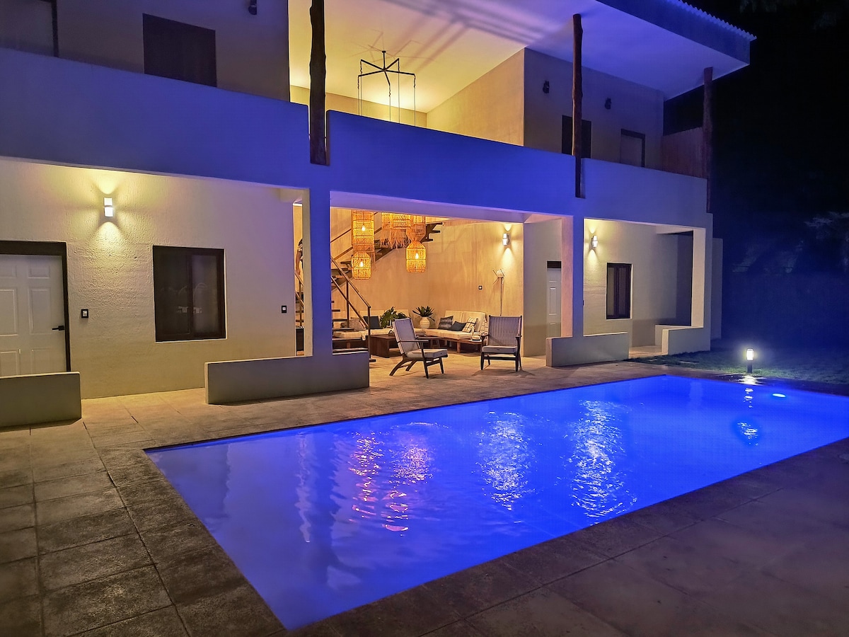 Վայելեք այս հանգիստ և նրբագեղ հանգստի վայրը, որը կատարյալ է քաղաքի աղմկից հեռանալու համար։ Սեփականությունը համատեղում է հանգիստ և ժամանակակից միջավայր, որը լի է բնական լույսով։ ✨ 🌿 Հանգստացեք և վայելեք արևը՝ լողավազանի մոտ գտնվող աթոռներին նստած։ Տարածքը շրջապատված է պարտեզներով։ Կգտնեք համատեղ օգտագործման համար կատարյալ բաց տարածք՝ հանգստի համար ցանցաճոճեր, բացօթյա խոհանոցային տարածք և կեսօրից հետո խորոված պատրաստելու գրիլ։ Այստեղ ամեն ինչ նախատեսված է ձեզ համար՝ խաղաղության, հարմարավետության և շփման պահեր ապրելու համար