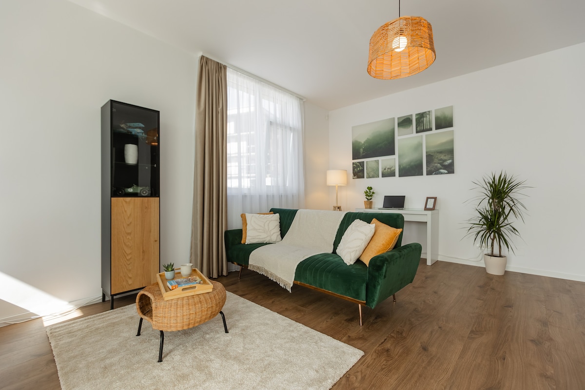 Մնացեք Տիմիշոարայի սրտում՝ ժամանակակից և լուսավոր բնակարանում։ Ձեզ սպասում են լիովին կահավորված խոհանոց, հարմարավետ հյուրասենյակ՝ մեծ հեռուստացույցով, հարմարավետ ննջասենյակ, նորաձև լոգասենյակ և պատշգամբ՝ անխոչընդոտ տեսարաններով։ Արագ Wi-Fi, օդորակիչ, մասնավոր կայանատեղի, ինքնուրույն ժամանում։ Հարմարավետություն և հարմարավետություն: Այս տունն ունի այն ամենը, ինչ ձեզ պետք է՝ ձեզ հրապուրելու համար։ Մի՛ սպասեք, ազատ ամսաթվերը արագ են սպառվում։