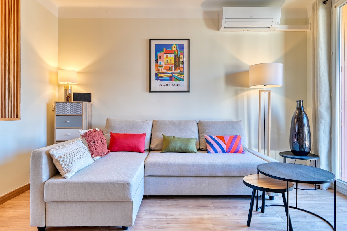 ✨ Le Cœur de Sanary | T2 cosy de 45 m2🏖️ 🌟 Emplacement idéal dans les rues piétonnes, à deux pas du port, marché et restaurants. 🅿️ Carte de parking gratuite mise à disposition donnant accès à 2 parkings publics (à 5 min à pied, stationnement libre selon disponibilité). 🛏️ Idéal pour 2 à 4 voyageurs. 📍 Tout accessible à pied pour un séjour sans contrainte. Au 2ᵉ étage d’un immeuble typique du centre-ville (sans ascenseur) 🛁 Linge de lit et de toilette inclus