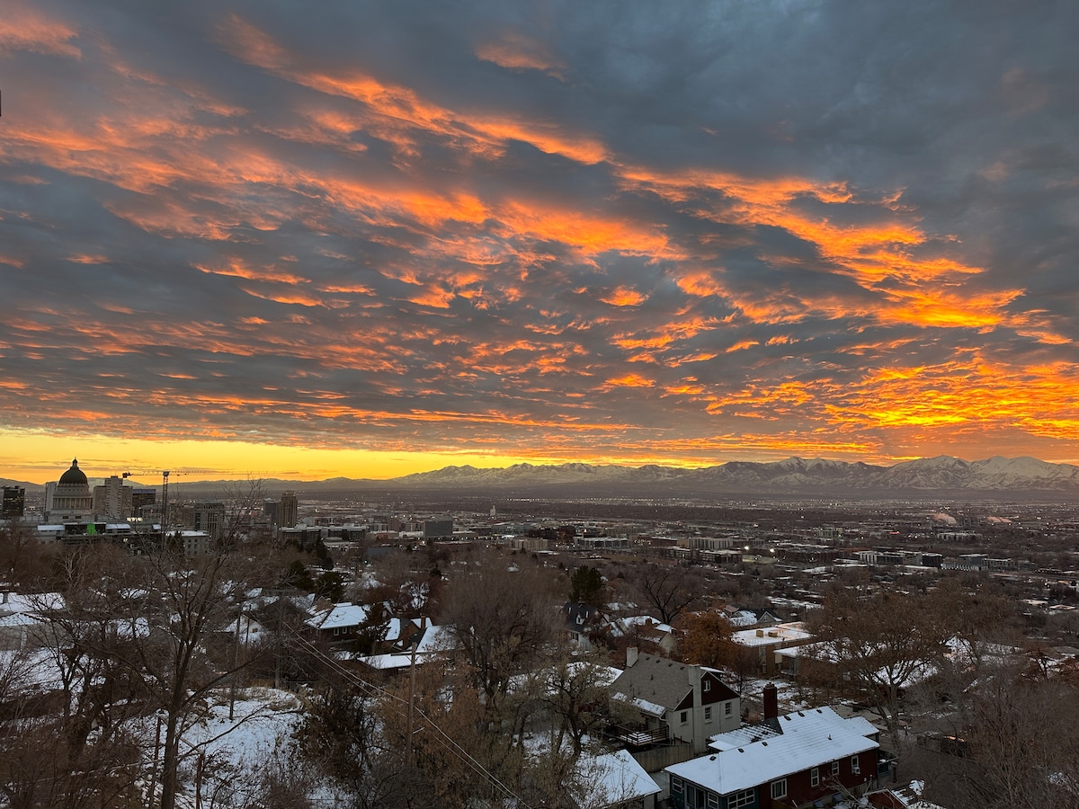 We named this home after the YouTube channel we share with the world, “Salt Lake Sunset,” where we live stream the gorgeous views from our home! The minute you walk into our home you are immersed in views offering the beauty that is Utah! Our home is located on the mountain bench of what is referred to "Capitol Hill" directly behind the Utah State Capitol and central to everything Salt Lake has to offer.