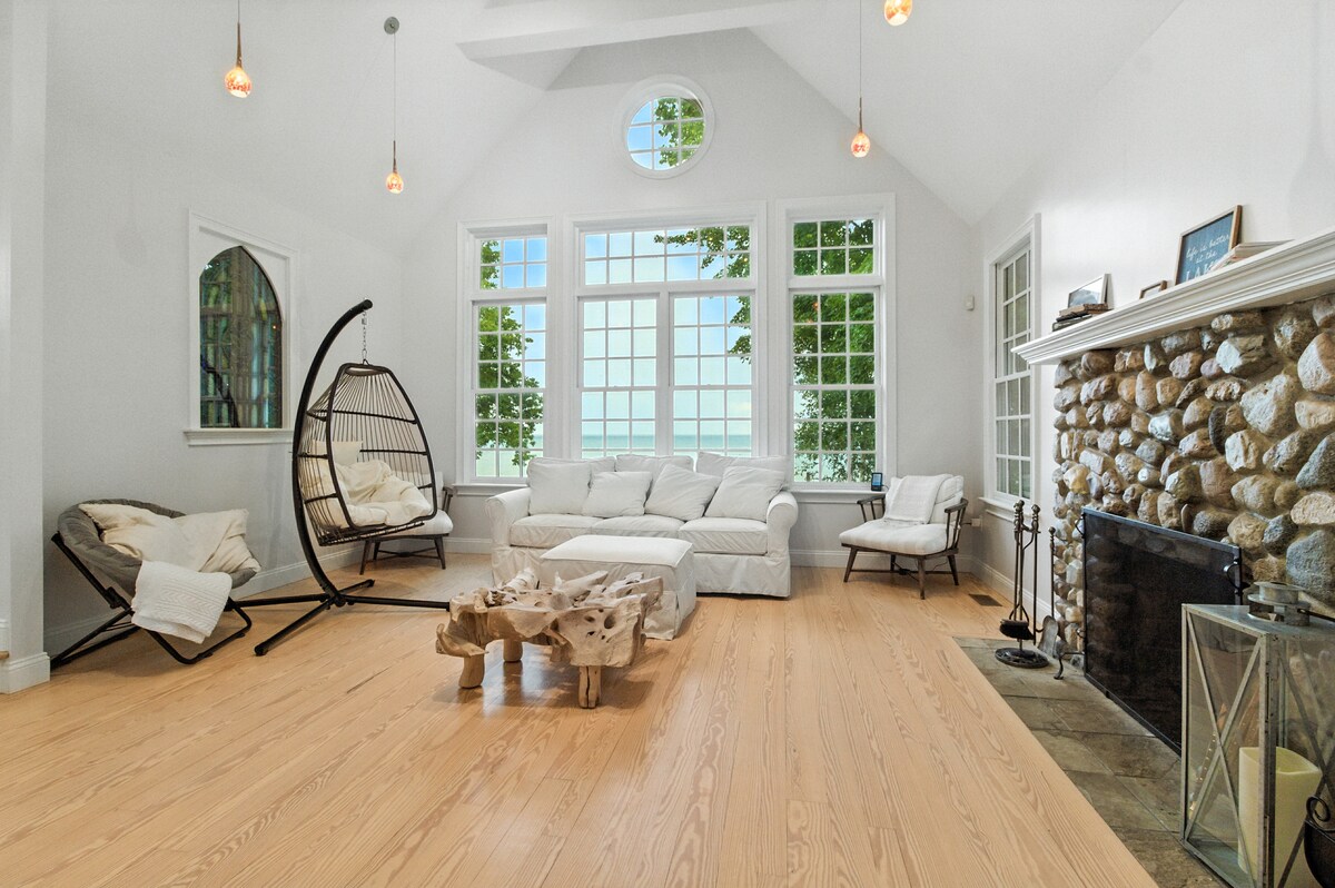 Բարձր բլեֆ անեզր տեսարան դեպի Հուրոն լիճը ։ Ձեզ դուր կգա ձեր այցը ՝ բացօթյա միջոցառման կատարյալ հավասարակշռության և բնության հետ շփվելու հնարավորության պատճառով ։ Հարմարությունները ներառում են երկու կայֆեր, մեծ բացօթյա կրակարան, ներսի բուխարի, մասնավոր լողափ և մոտակա նավահանգստային քաղաքներ ՝ ուսումնասիրելու համար ։ Հարմար է զույգերի և միայնակ արկածախնդիրների համար ՝ Հուրոն լճի ափին գտնվող այս հանգույցի սոճին, բարձր առաստաղով քոթեջն ունի ամբողջական խոհանոց ՝ գեղեցիկ որձաքարե սեղանածածկերով և ննջասենյակի ֆրանսիական դռներով ։