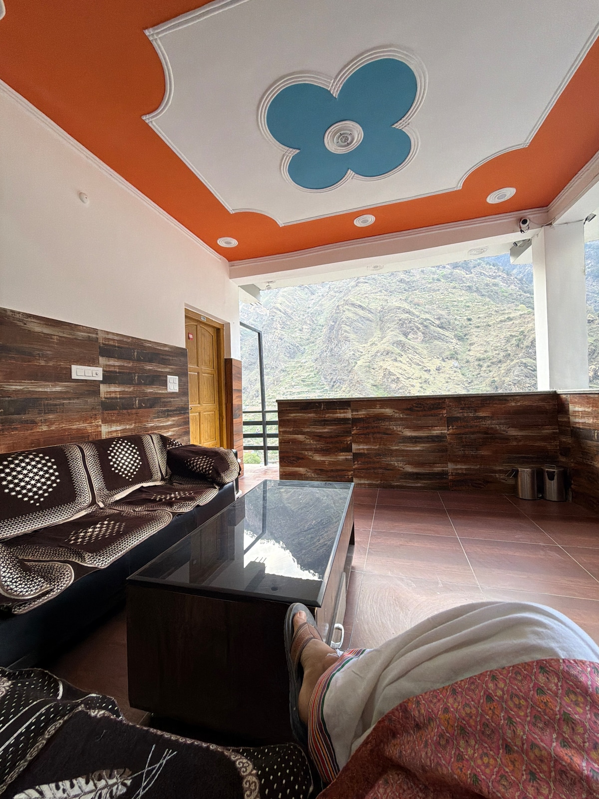 The fresh air, colors of nature and staying next to nature will bring you inner peace. There is no network available in the area but electricity is there and a TV. There are ample of treks in the area short and long, one of them is the famous rupin range trek. In summers, half a kilometer walk will take you to the rupin river for a swim, and in winters you will feel snow at you feet just outside the house. There is no market nearby just a local shop, all the basic amenities are available.