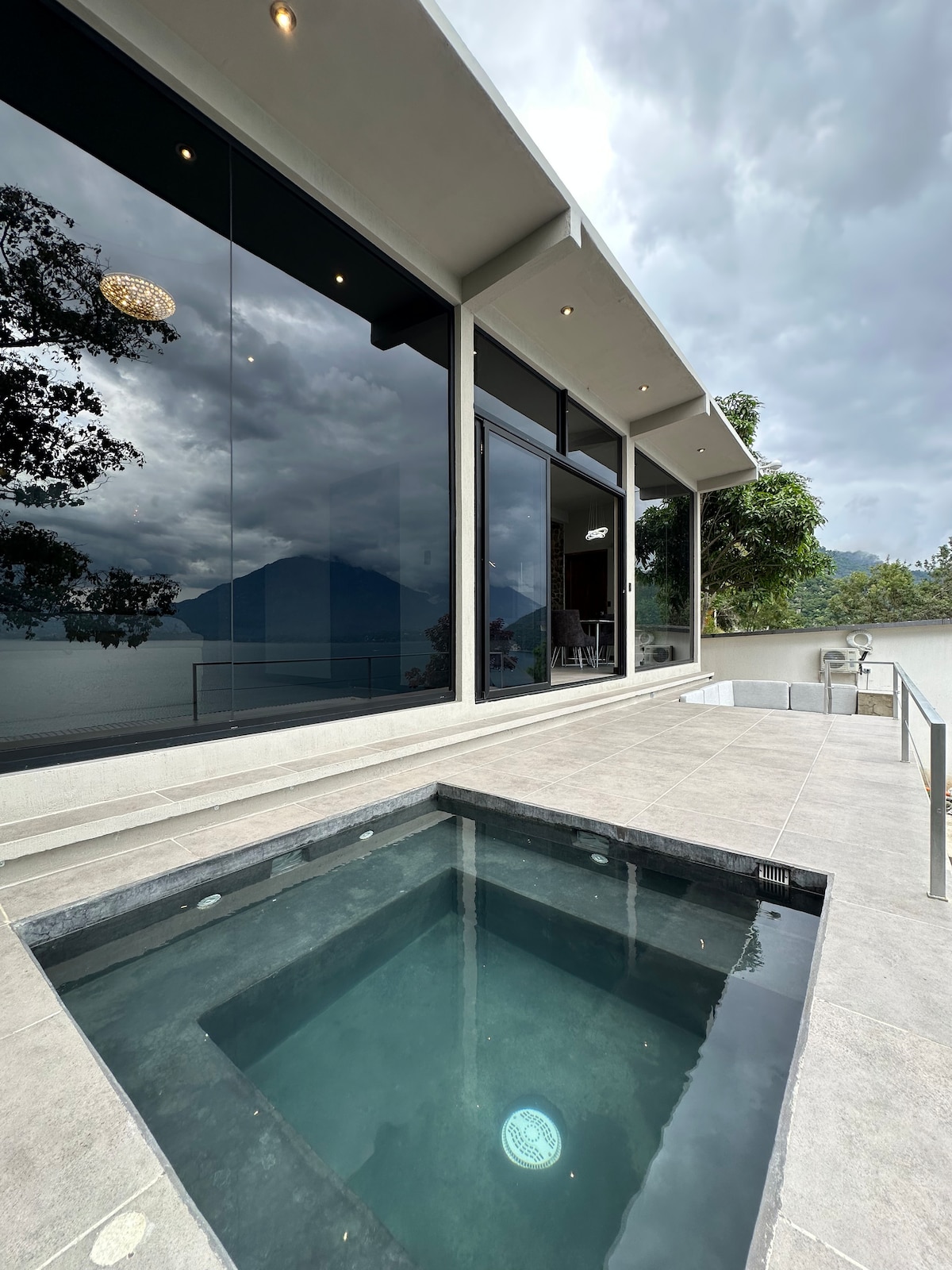 Very Unique & Modern Luxury House up in the Guatemalan Highlands with the sensation of floating up in the sky (1700m) -Features unobstructed Starlink connection with 24 hours of unbroken electricity (lithium/solar) -All windows folds fully open to greet the breathgiving views of 5 vulcanos and the “infinity lake” of the ever changing “painting” -Filtered spring water on tap -Bathroom hot tub for a closed or open door experience -12 m2 cantilevered hammock deck-net for stargaze & relaxation