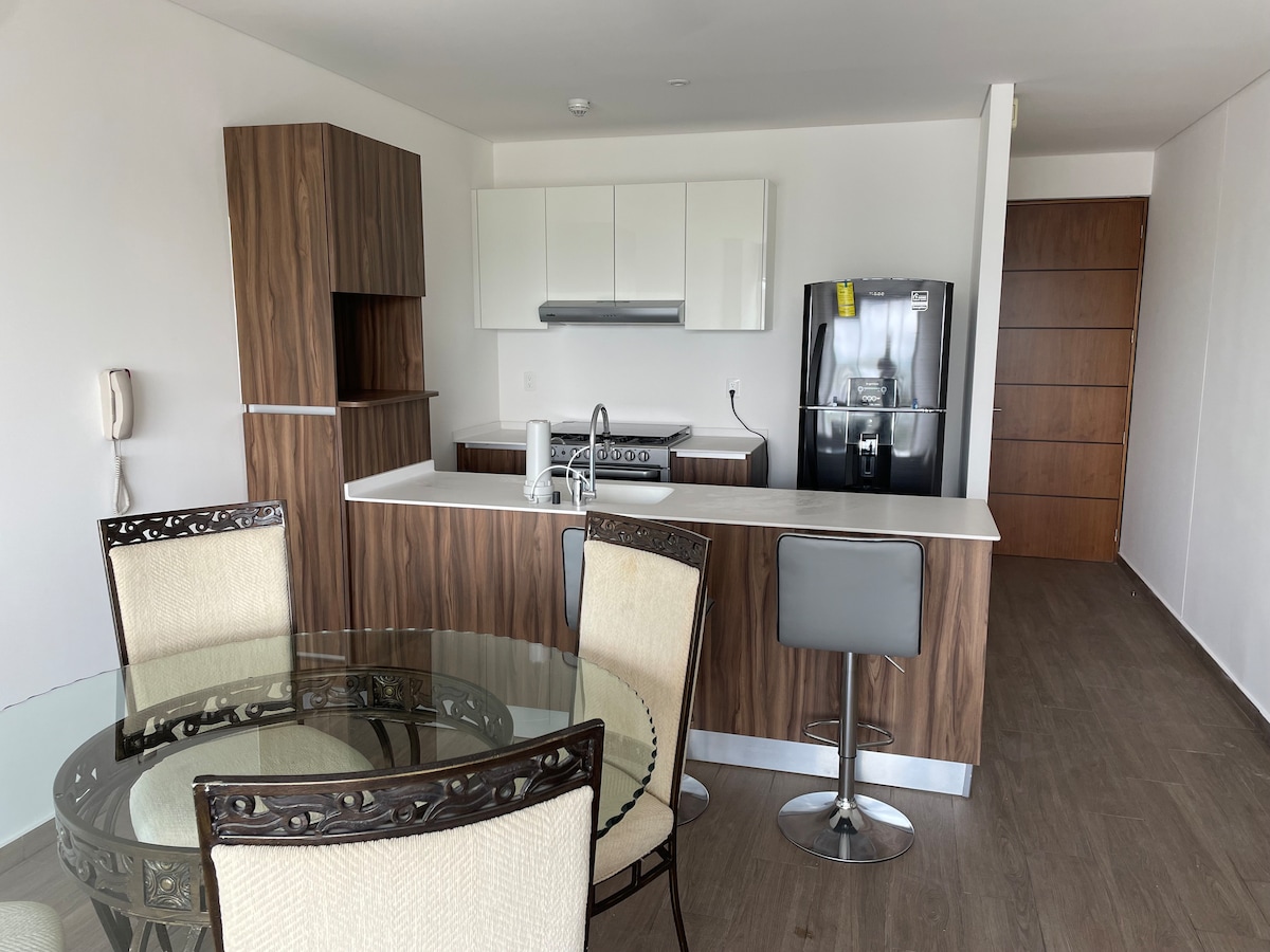 Նոր և լիովին կահավորված բնակարան Lomas de Angelópolis - ի հարևանությամբ և 8 րոպե Paseo Destino Terminal - ից, Պուեբլայի կարևորագույն համալսարանների, ինչպես նաև առևտրի կենտրոնների և ռեստորանների հարևանությամբ: Այն ունի լիարժեք խոհանոց, սառնարան, միկրոալիքային վառարան, սրճեփ մեքենա, սպասք, նստարաններով խոհանոցային բար, 58"Smart TV էկրան (Netflix, Prime video, Disney) գերարագ ինտերնետ կապ (60 Մբիթ/վ): Բնակարանը գտնվում է մասնավոր համալիրում ՝ շուրջօրյա անվտանգությամբ: