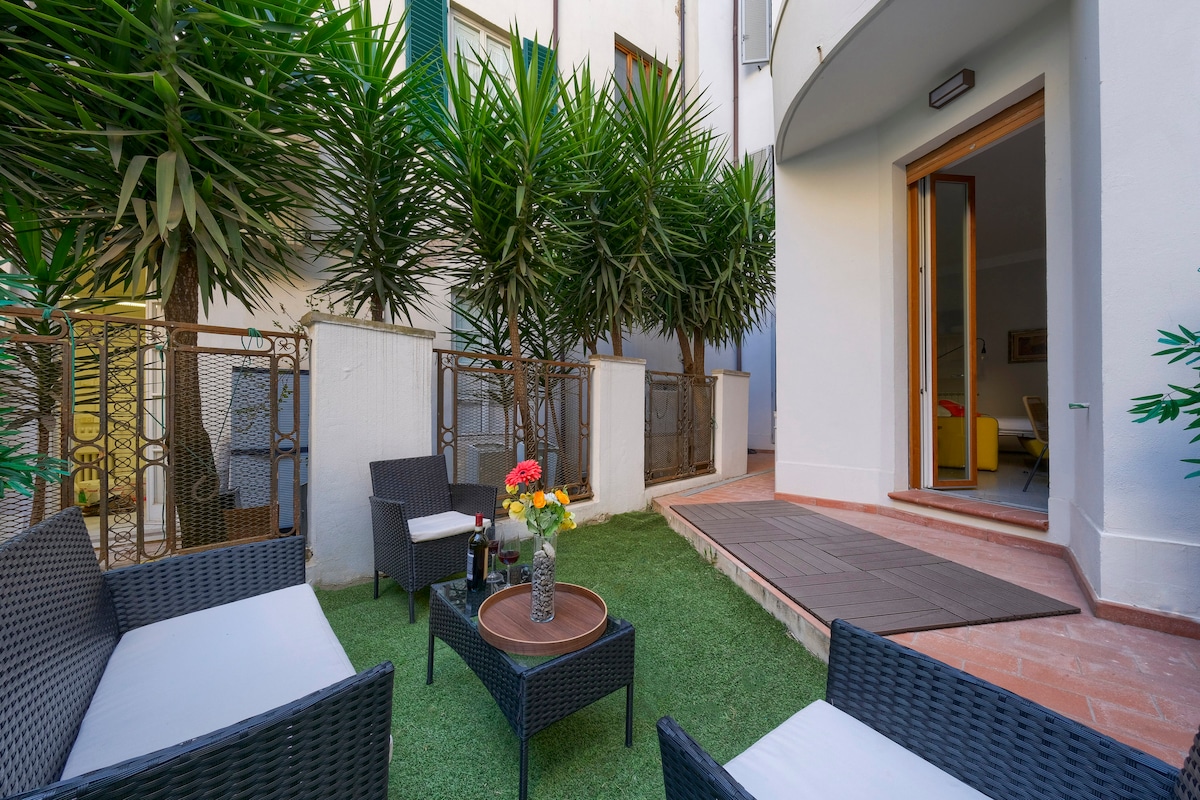 Welcome to Florence’s historic centre. Arriving is effortless—just an 18-min walk or 12-min tram from SMN Train Station. From here, exploring is a breeze. Step outside, and the Duomo is just 12 minutes away, with Ponte Vecchio, Michelangelo’s David, and more all nearby. Nestled in a historic building and newly renovated for modern comfort, this apartment features a stylish, contemporary design complete with its own bar, while the outdoor patio provides an escape from the bustle of the city