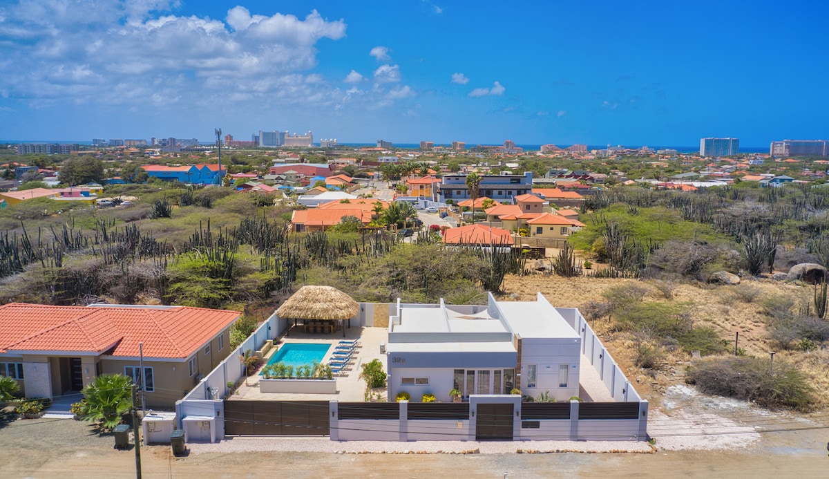 Փախեք մեր միջերկրածովյան վիլլա և վայելեք Արուբայի սպիտակ ավազները երջանիկ կղզում, մնացեք շքեղ բնակարանում ՝ Կարիբյան ավազանի տան լավագույն հարմարավետությամբ, որը գտնվում է հենց լողավազանի տարածքում: ԼԱՎԱԳՈՒՅՆ ՎԱՅՐԸ * Ոտքով 400 մետր Փալմ Բիչ *Noord Supermarket 350 մետր քայլում *Ռեստորանների տարածք 4 րոպե մեքենայով * Ռեստորանների, գիշերային ակումբների, գետերի և առևտրի կենտրոններից ընդամենը 4 րոպե հեռավորության վրա ։ ~ԵՐԵԽԱՆԵՐԸ ՈՂՋՈՒՆԵԼԻ ԵՆ: